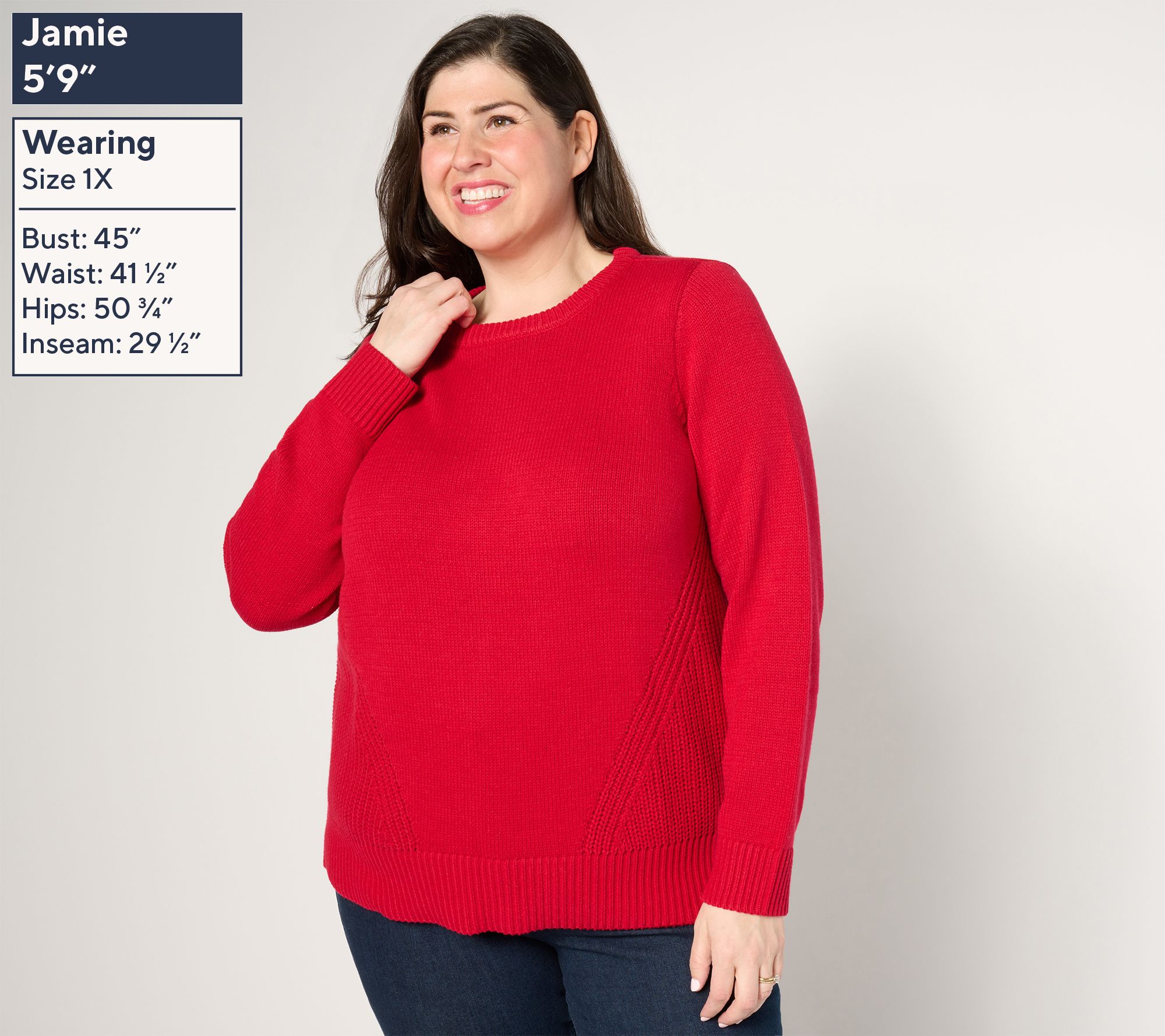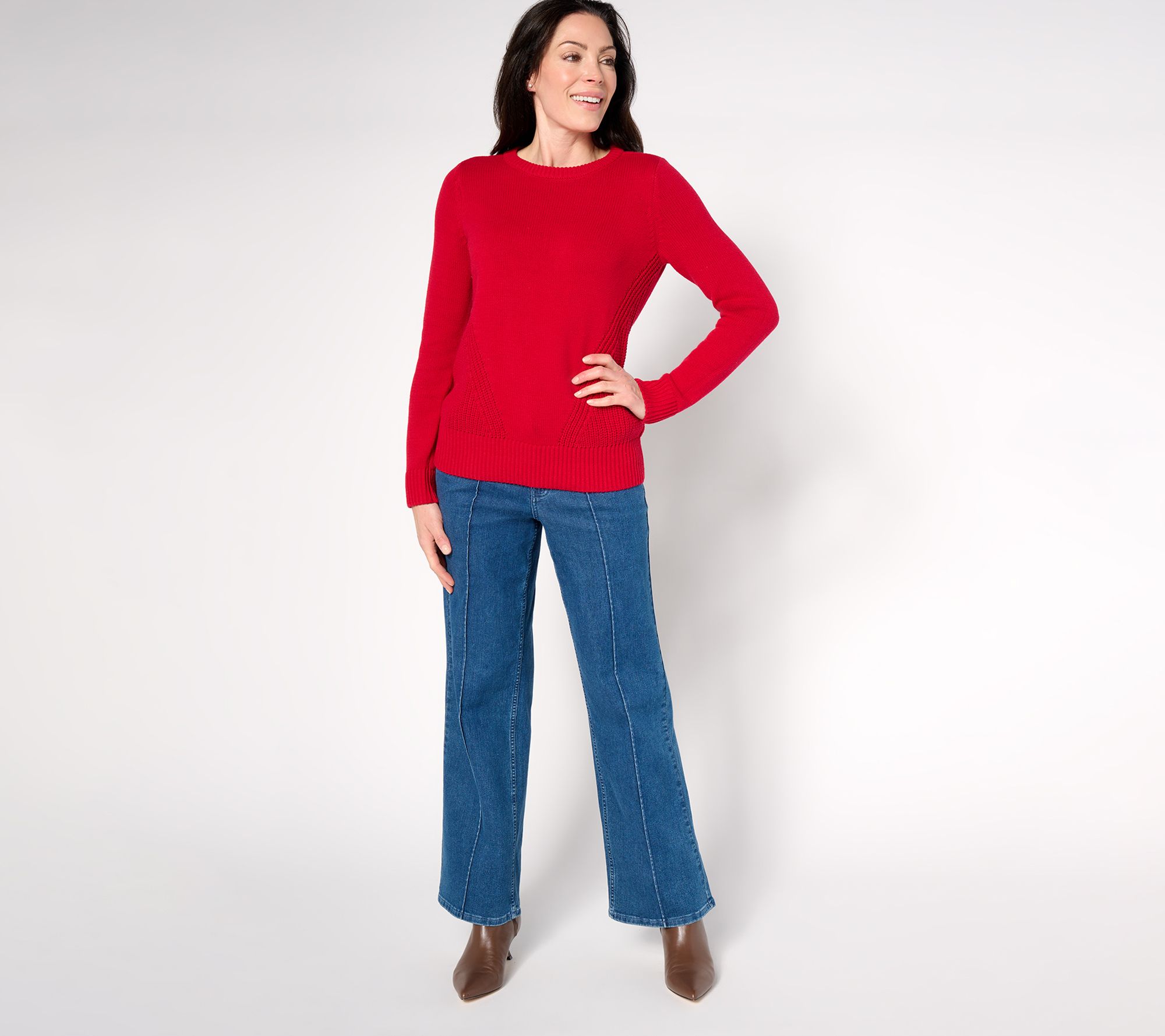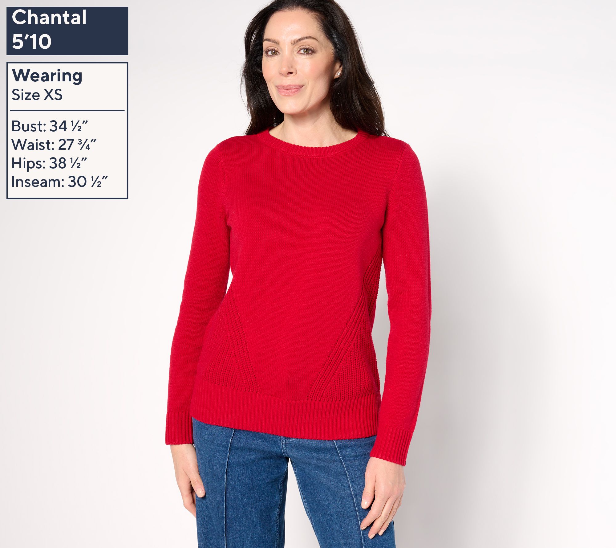 Coffee. Catch-ups. Maybe even some holiday caroling? This crewneck's got more in store than you thought. Diagonal shaker knit panels are knitted right in to make every circled date on your seasonal calendar a bit more stylish. From Belle by Kim Gravel.