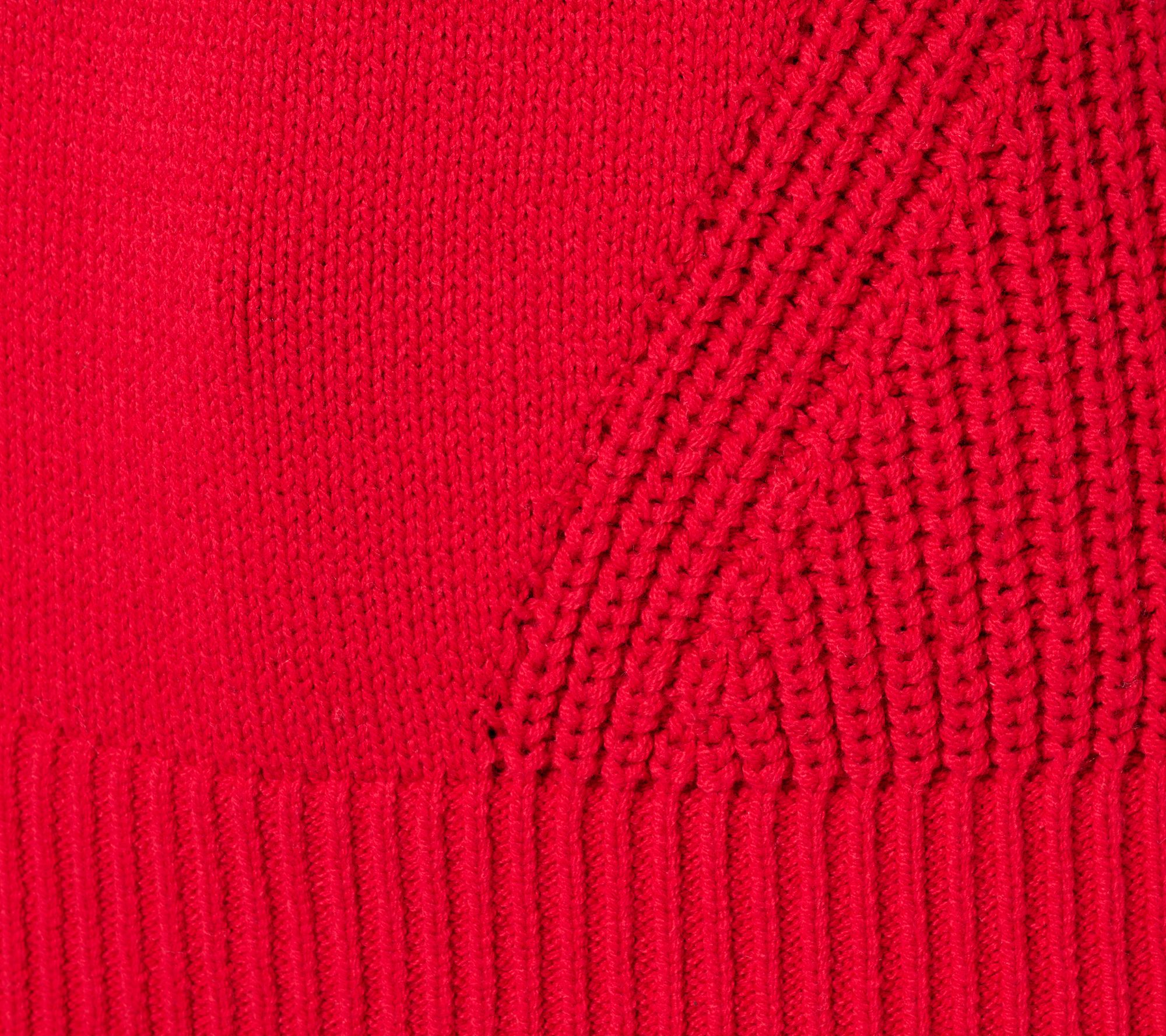• Features: long sleeves, crewneck, ribbed cuffs and bottom band, shaker knit diagonal panels, straight hem