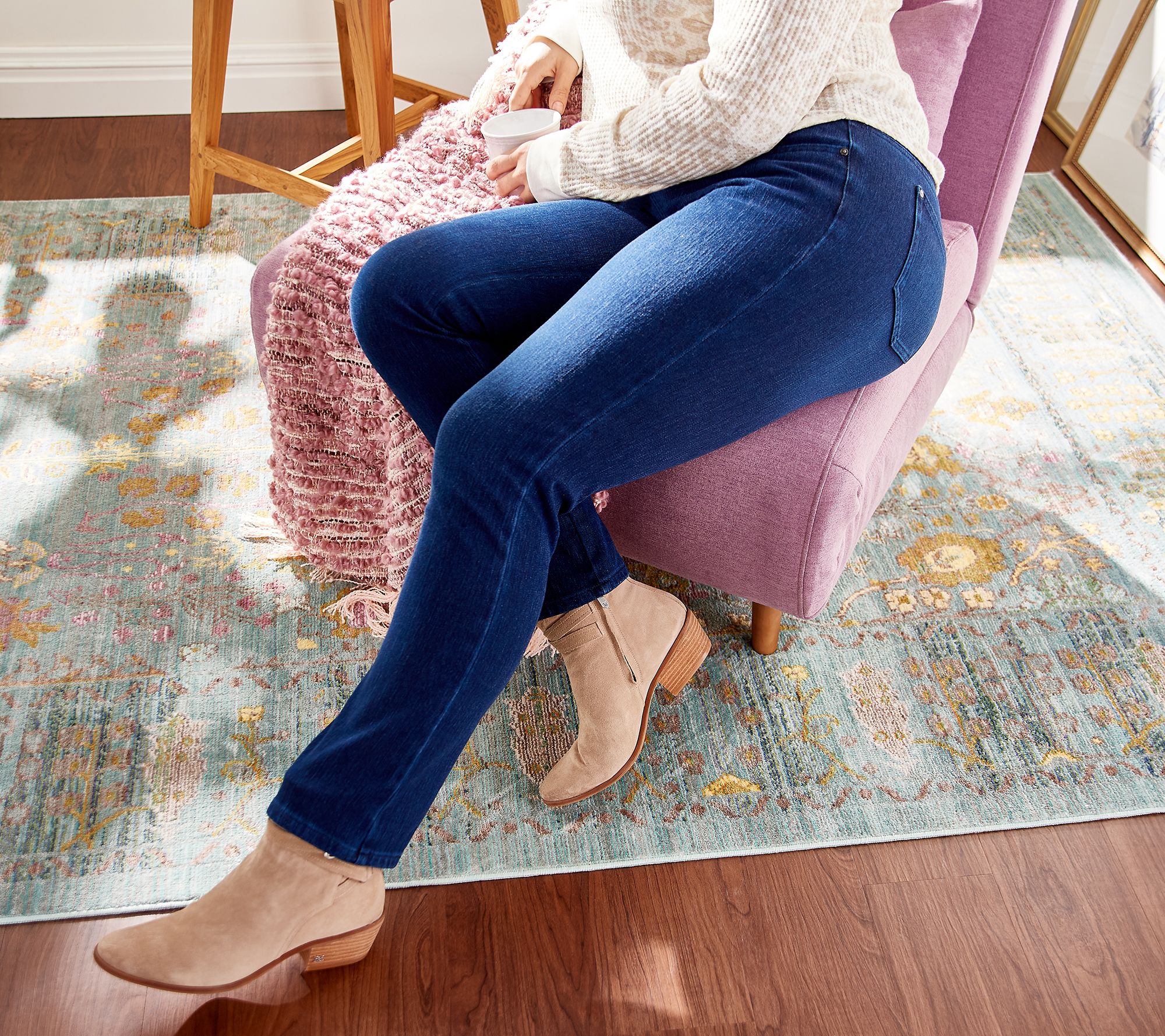 Careful -- these jeans are fire. Designed with the most artful mix of feel-good and look-good details (which is basically what we all want in our jeans), this pair turns up the heat for work, dining out, and every other place you're headed. We just can't decide what we love most: the trendy straight-leg silhouette or the so-comfy elastic waistband. Kim -- you've done it again! From Belle by Kim Gravel.