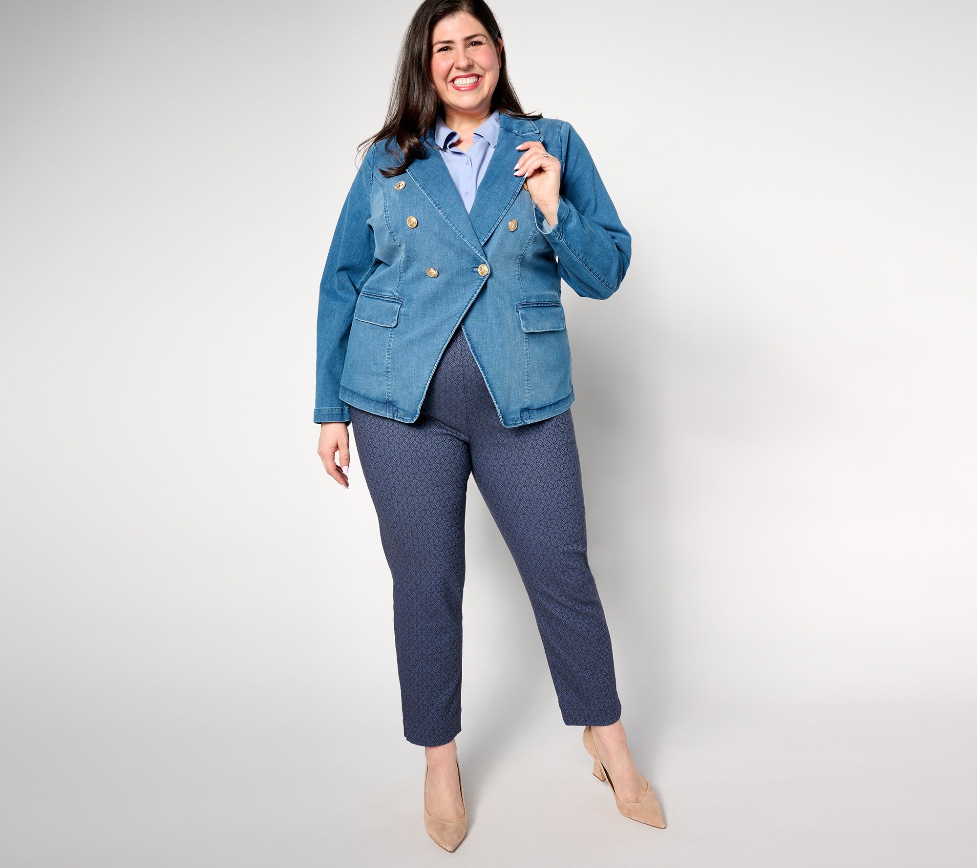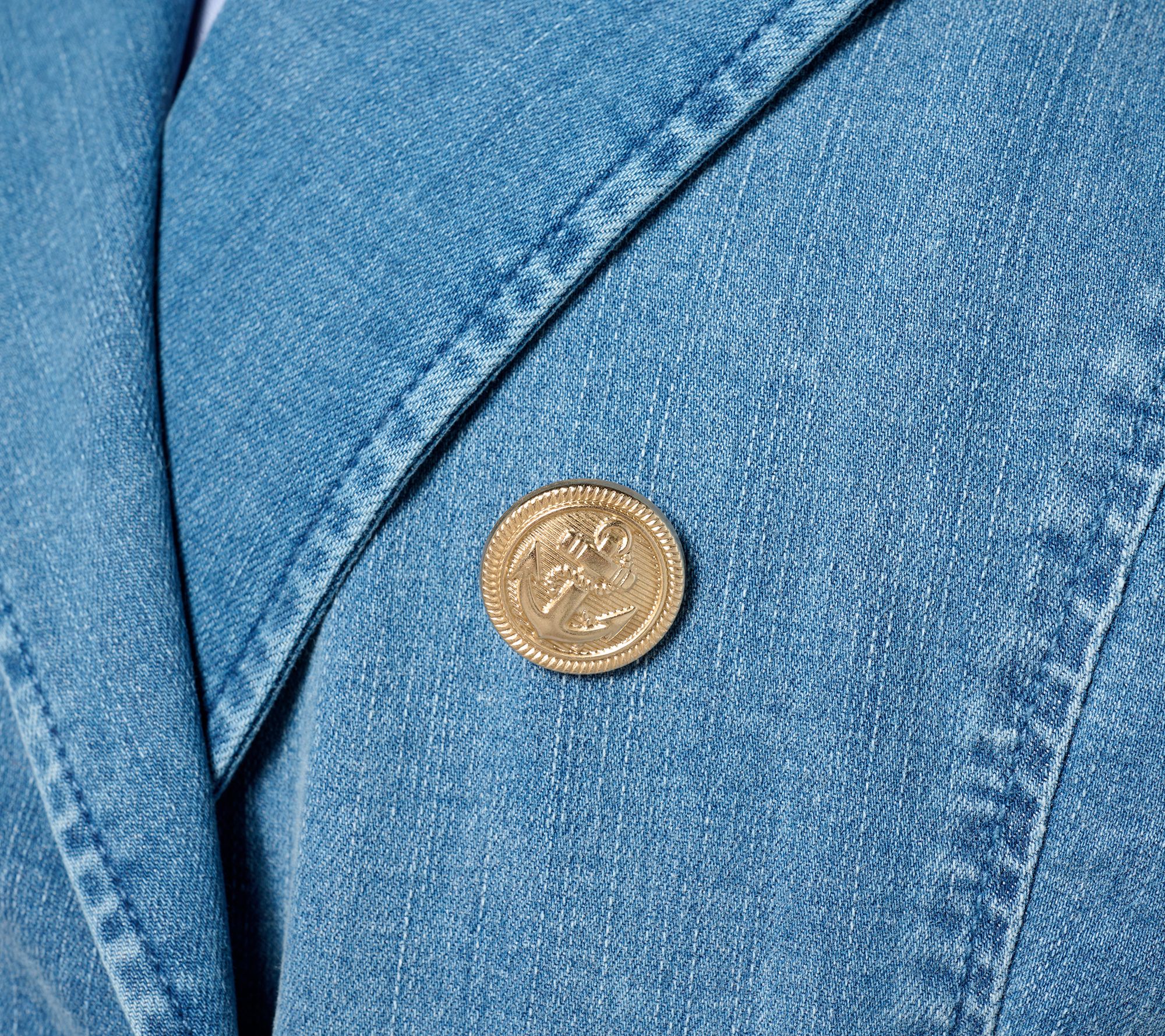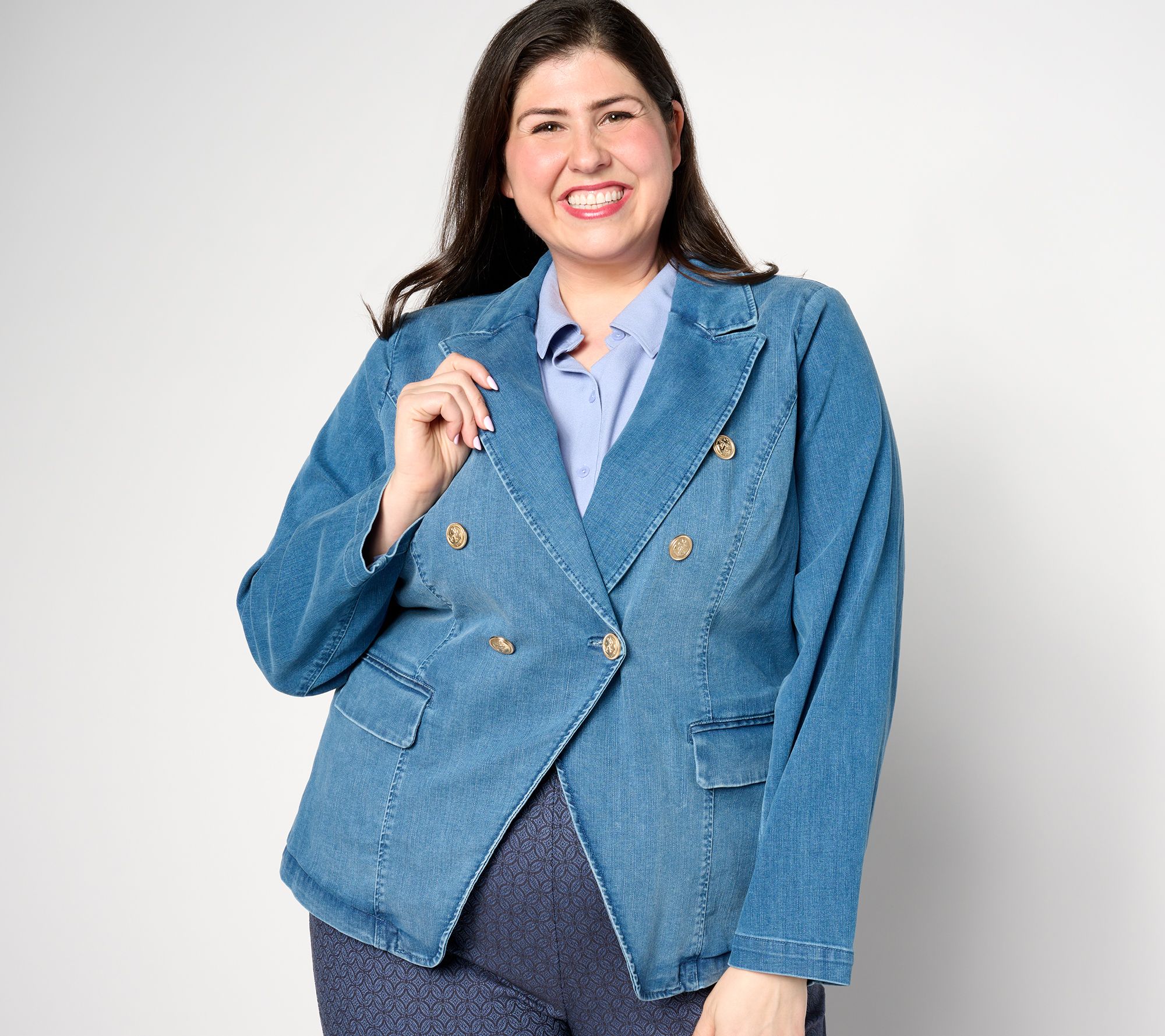 A tailored take on the in-demand denim jacket, this nautical blazer is designed in the same favorite fabric but boasts a stylish structure and effortless versatility. The options are endless for this lovable layer! From Belle by Kim Gravel.