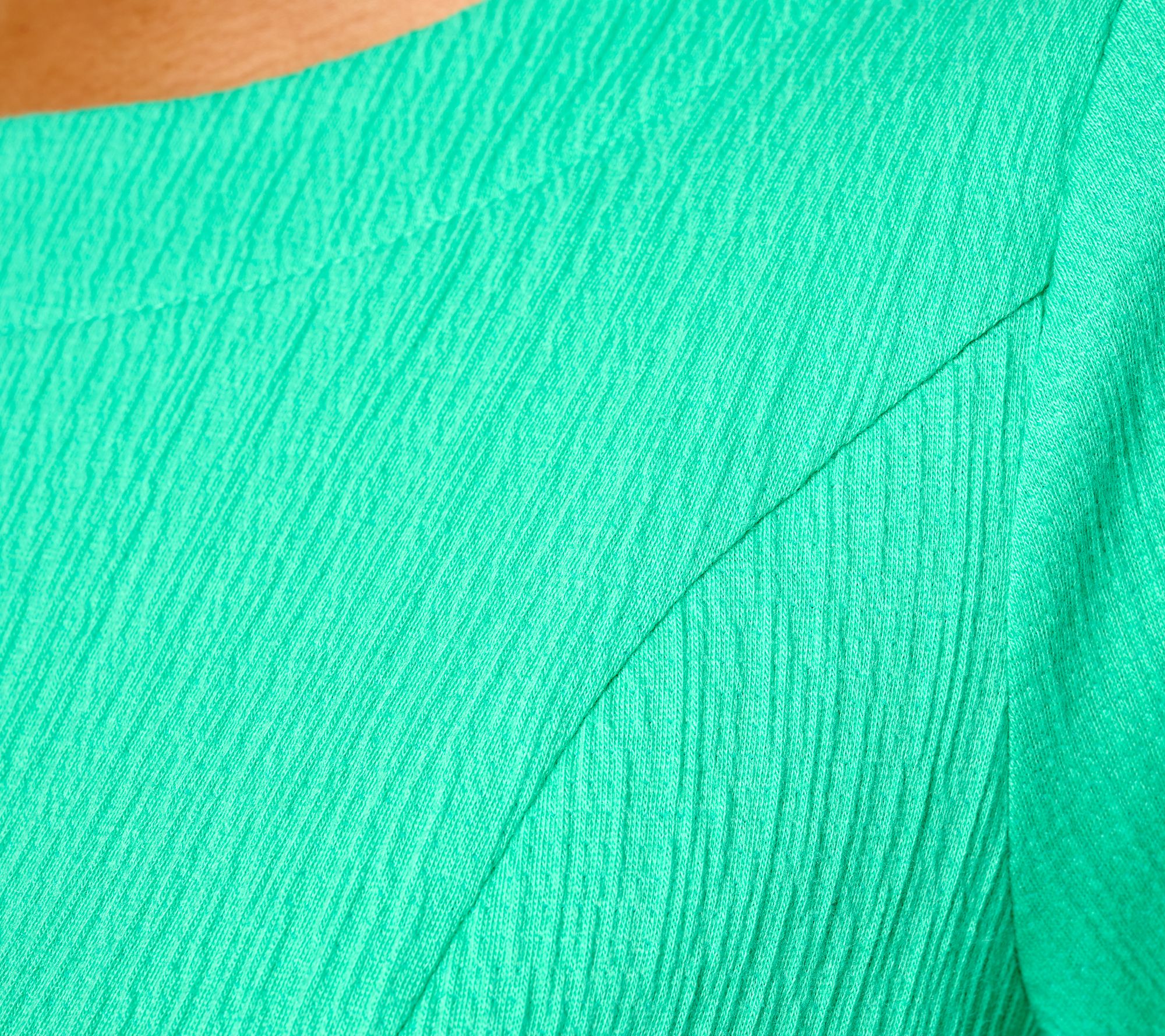 • Features: round neckline, 3/4-length bell sleeves, princess seaming, side vents