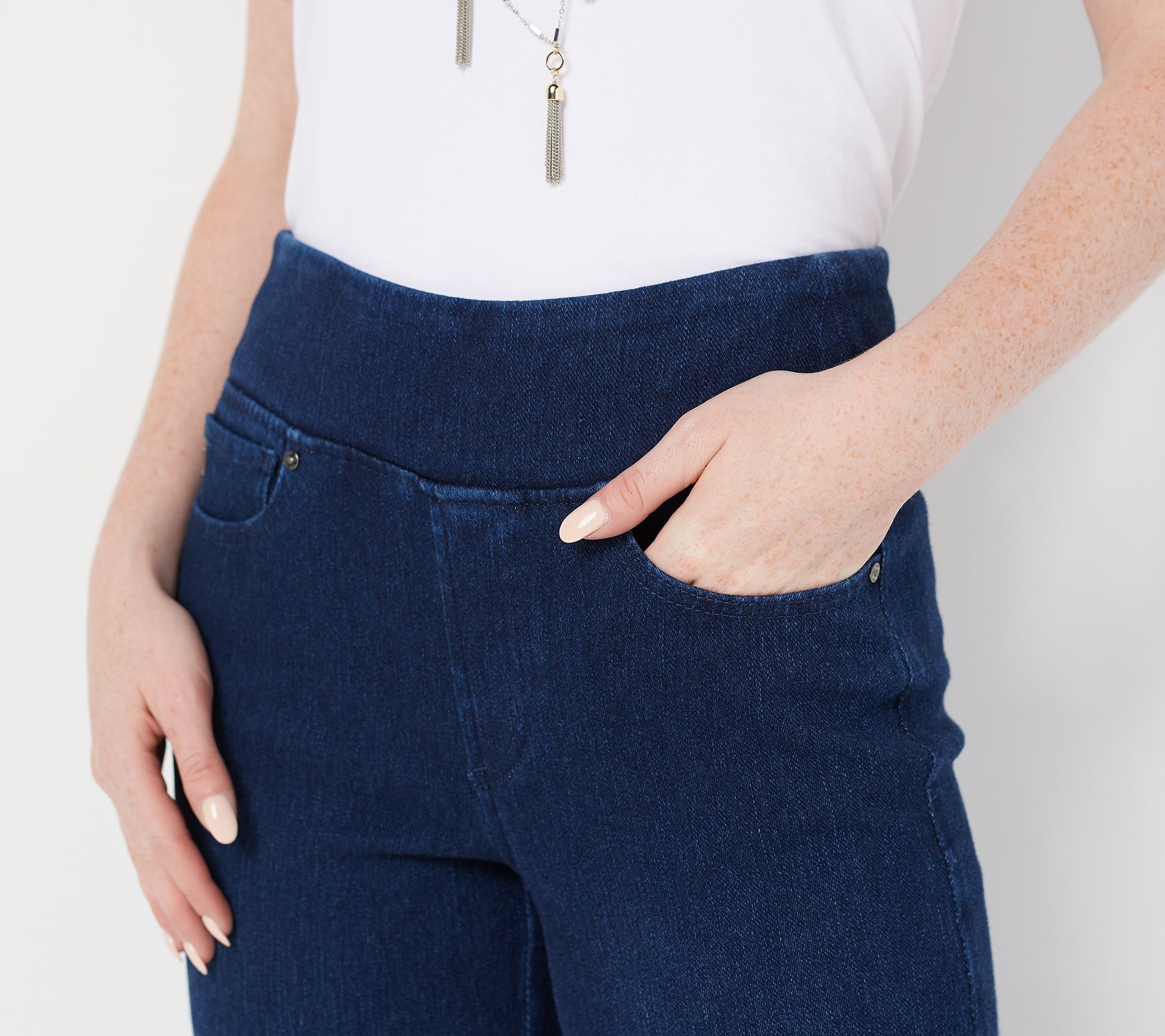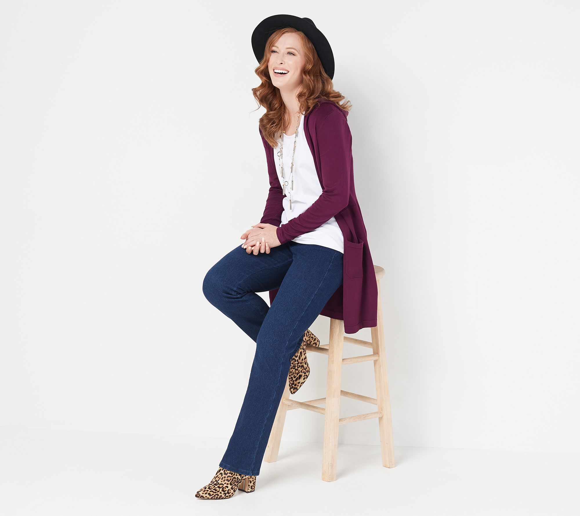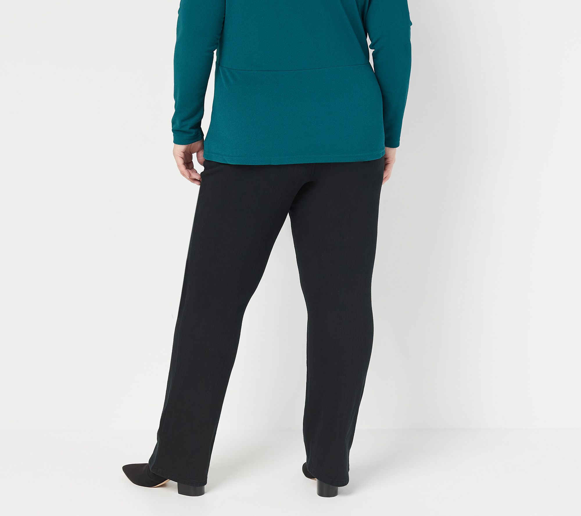 If only your head were on a swivel -- then you could get the full, flattering view of these Flexibelle boot-cut jeans. And, as always, Kim Gravel's keeping it Real,with no back pockets to catch on your cardis or tunics. Simply dress them up (or down) with your favorite accessories of the moment (looking at you, animal-print booties) and bring the to-die-for comfort with you wherever you travel. From Belle by Kim Gravel.