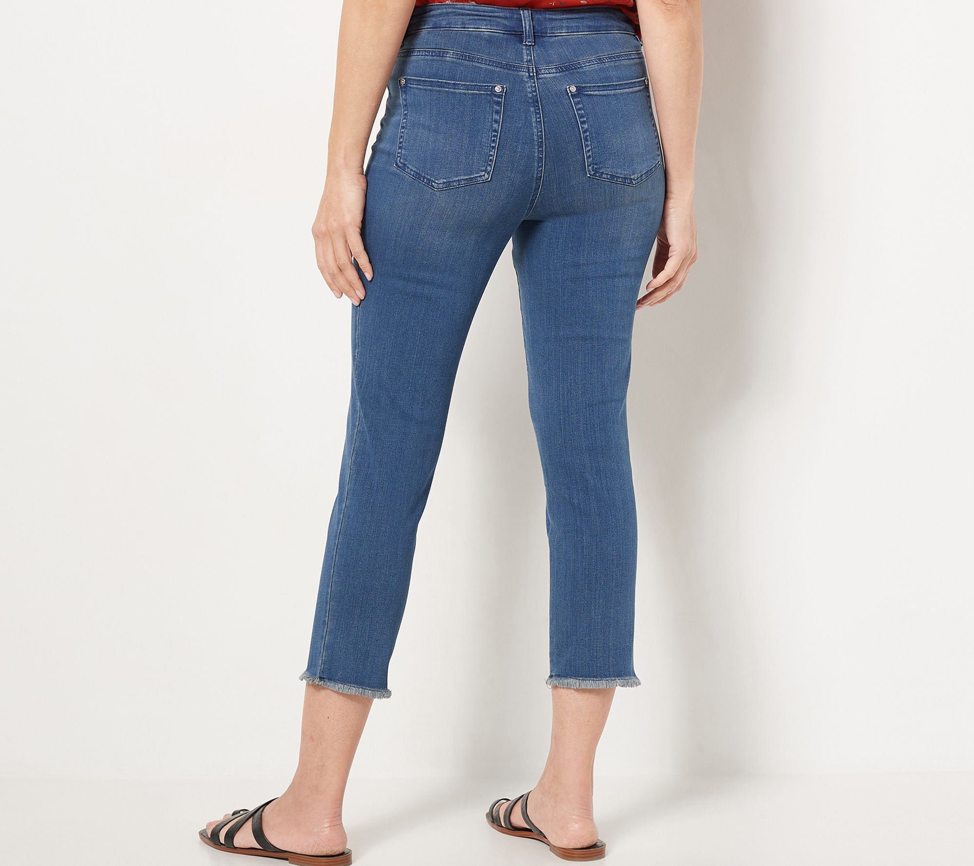 You'll be keen to wear these cropped jeans to the park, the farmer's market, or your local watering hole. The frayed detail at the hem adds a fabulous finishing touch. From Belle by Kim Gravel.