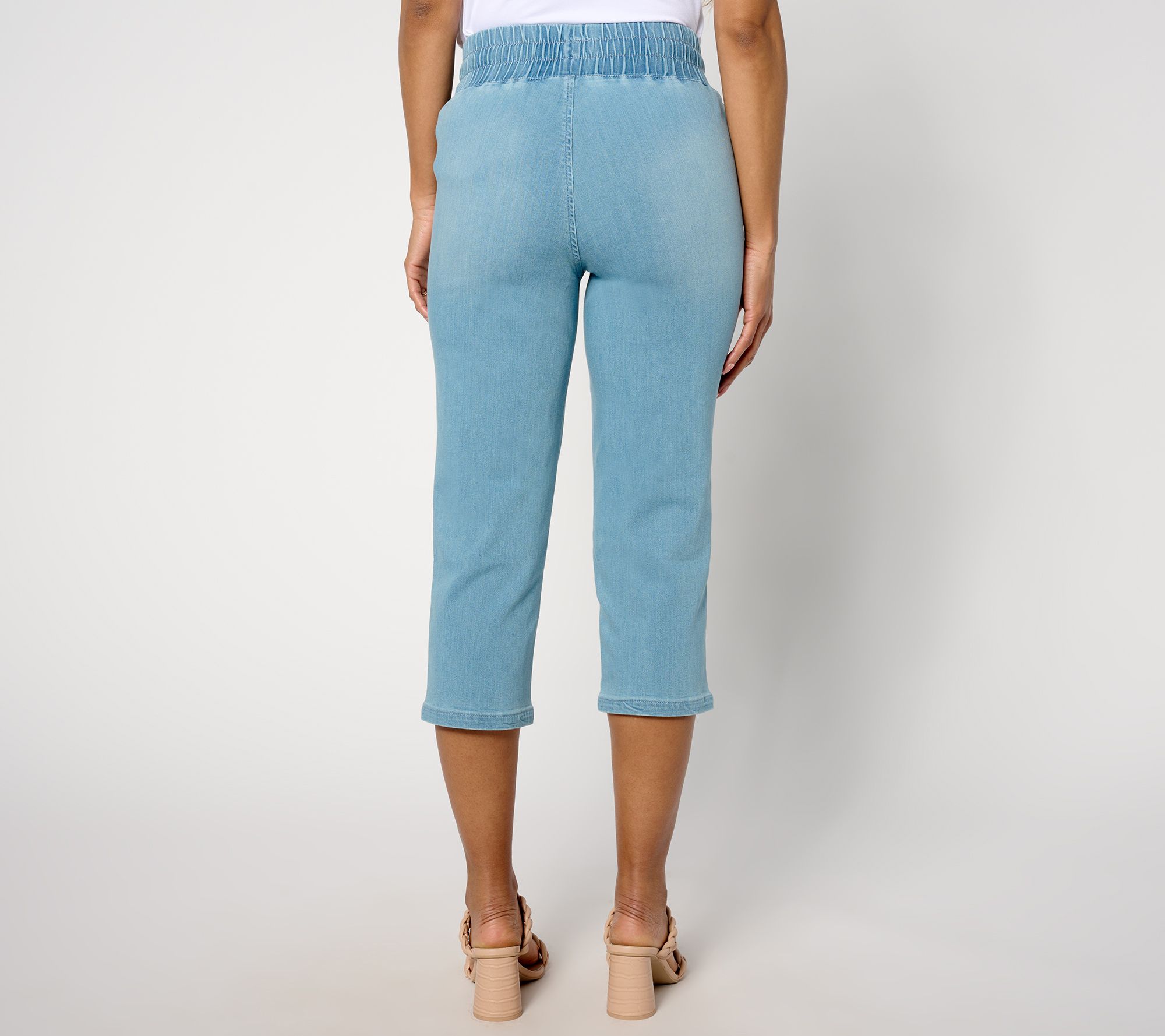 Put a fresh spin on summer style in these utility capris. Crafted of Kim's luxe Primabelle fabrication, this straight-leg denim follows the lines of your body for a flattering silhouette. Easy pull-on wear means you'll reach for these pants again and again. From Belle by Kim Gravel.