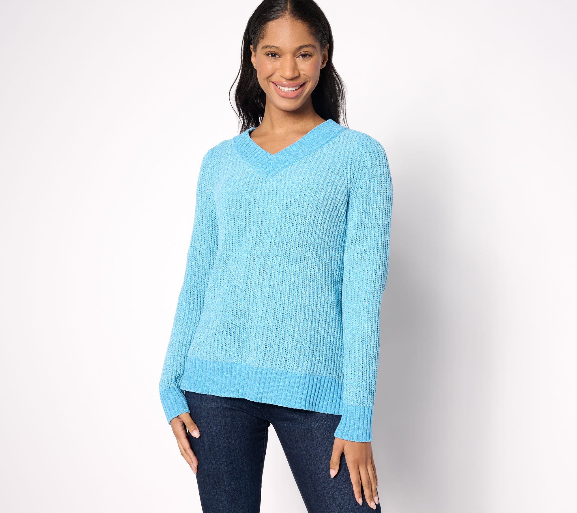 "As Is" Belle by Kim Gravel Shadow Rib Chenille V-Neck Sweater