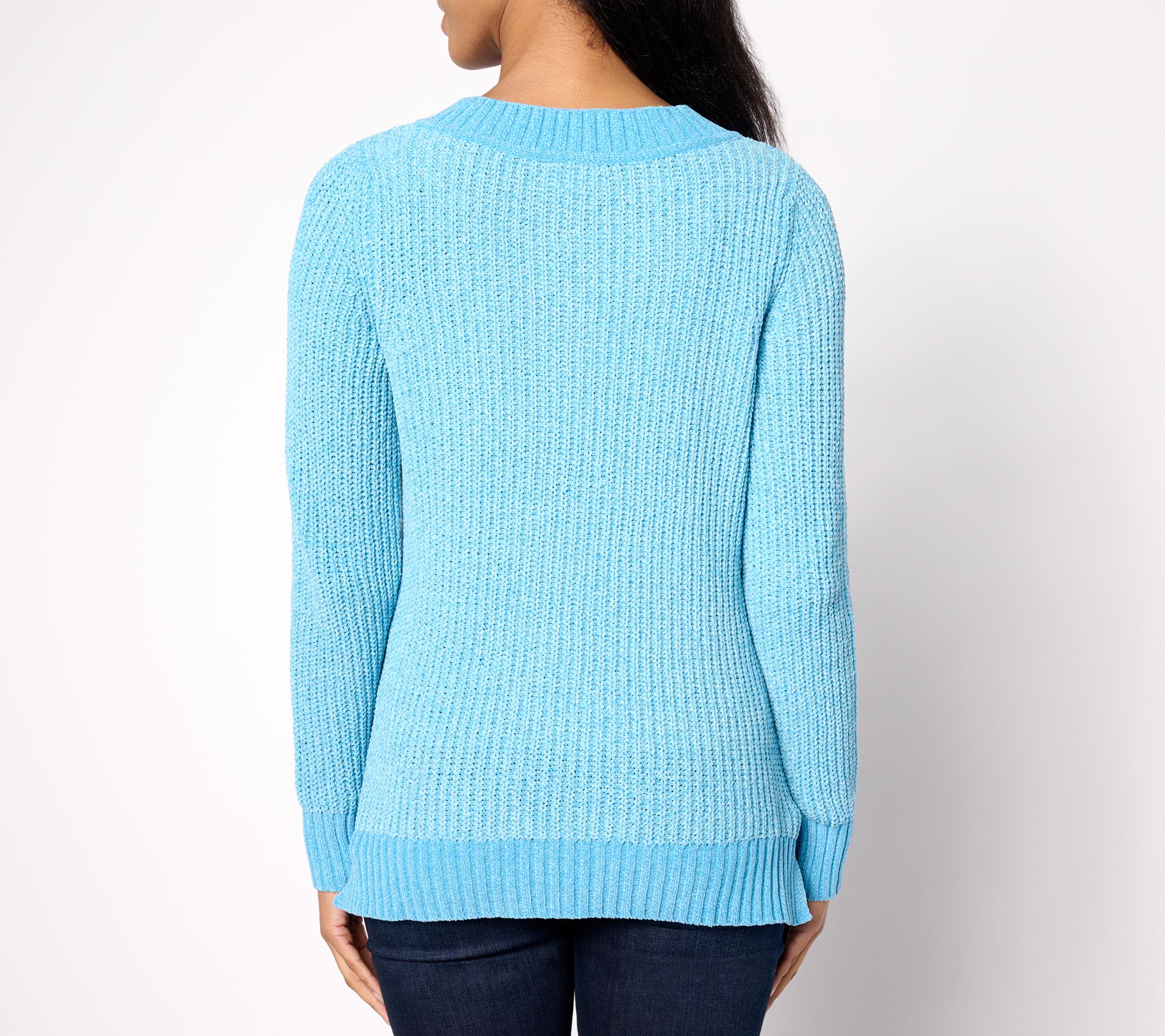 We're calling it: in a pretty shadow-rib chenille, this Belle by Kim Gravel creation is your coziest, most covetable sweater-weather style of the year. From Belle by Kim Gravel.