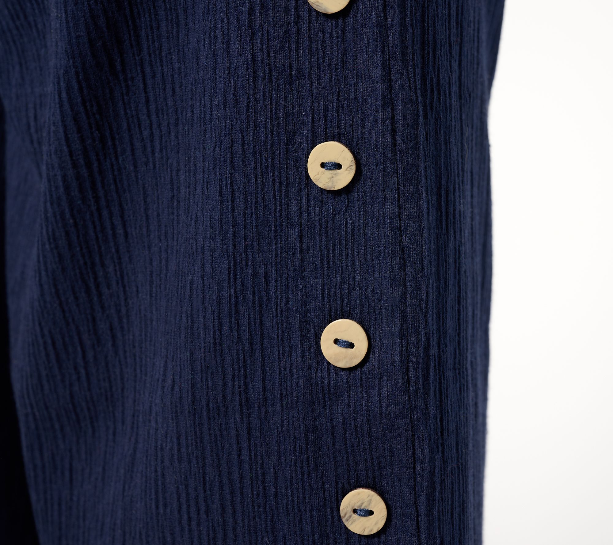 Low-stress, luxe-looking style is in the (getaway) bag with these Packabelle knit pants. Buttons along the side seams provide polish that's perfect for resort dining and beyond. From Belle by Kim Gravel.