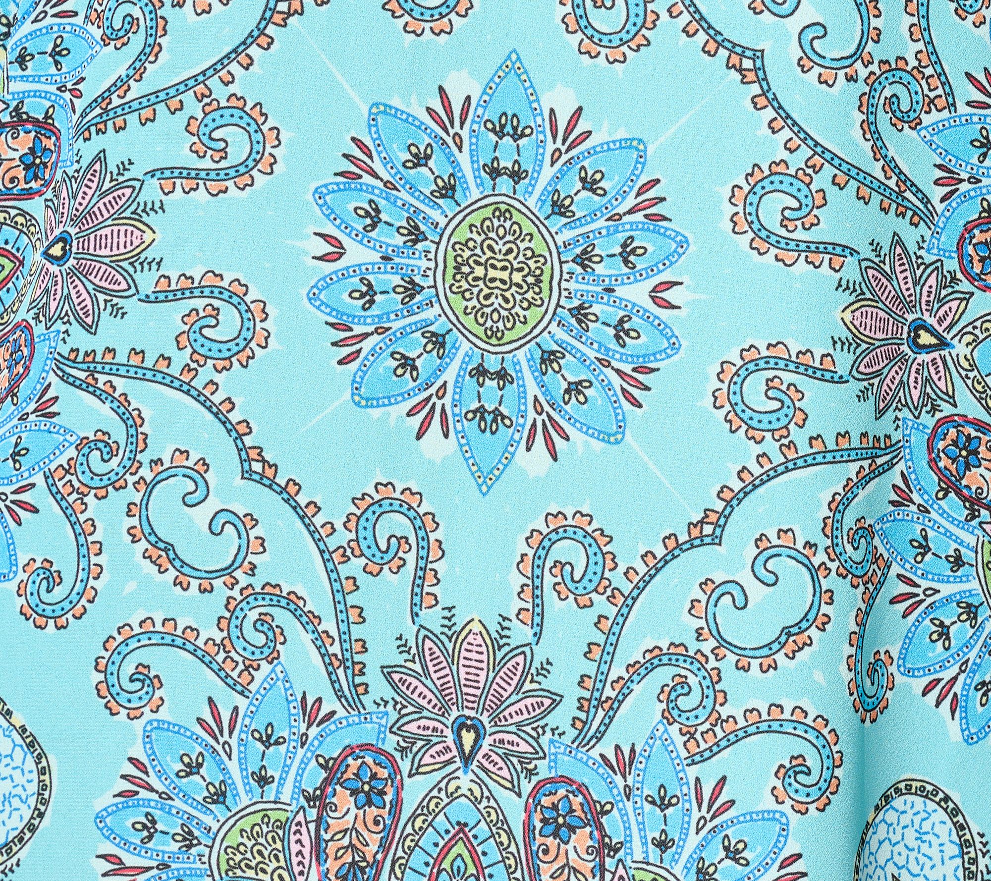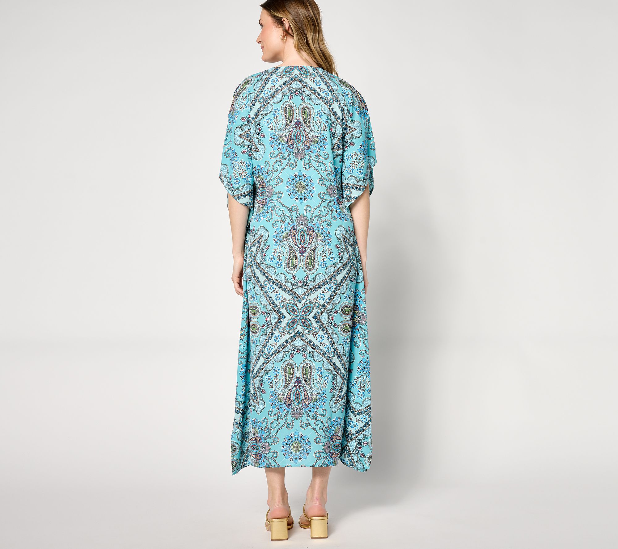 • Features: allover print, V-neck, short sleeves, poncho-style