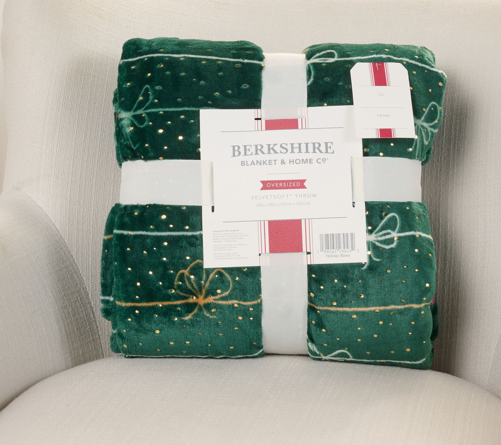 Bring a festive vibe to any room with this plush throw, designed with shimmering foil print that instantly brightens holiday gatherings or quiet winter evenings. Whether draped over a sofa or unwrapped as a thoughtful gift -- a to/from tag makes it easy -- this cozy blanket invites you to relax and celebrate in style. From Berkshire Blanket.