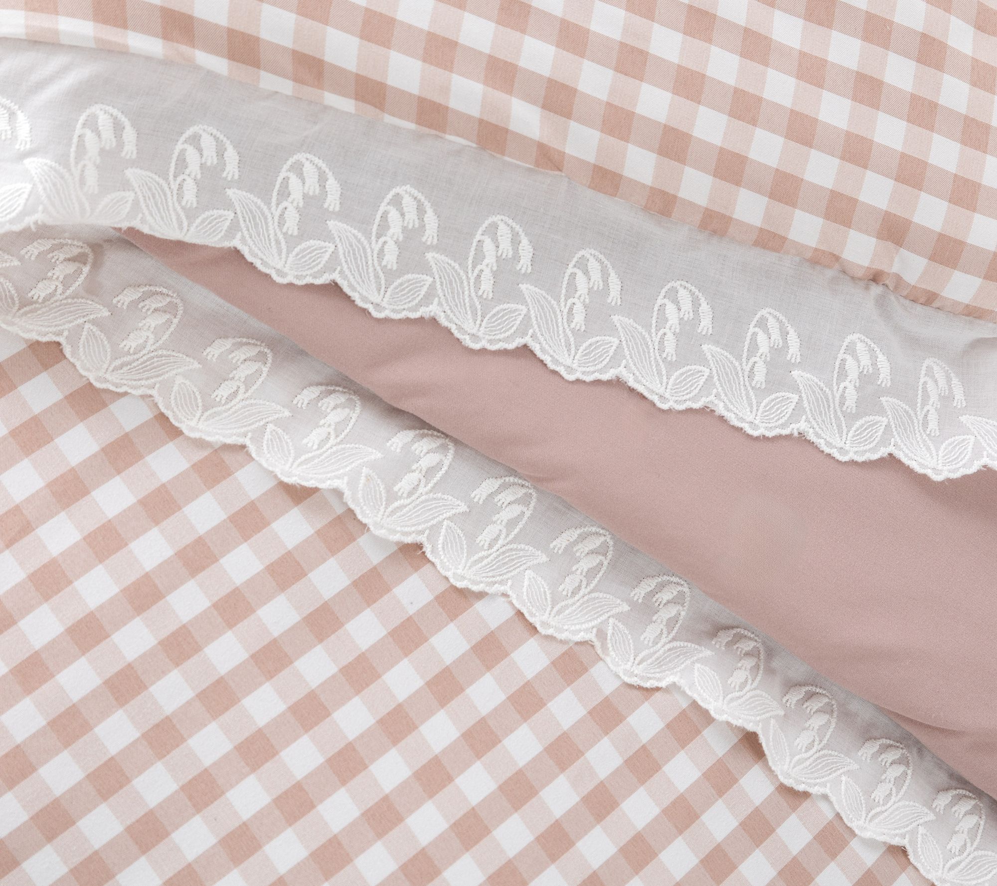 • Gingham print with lace trim