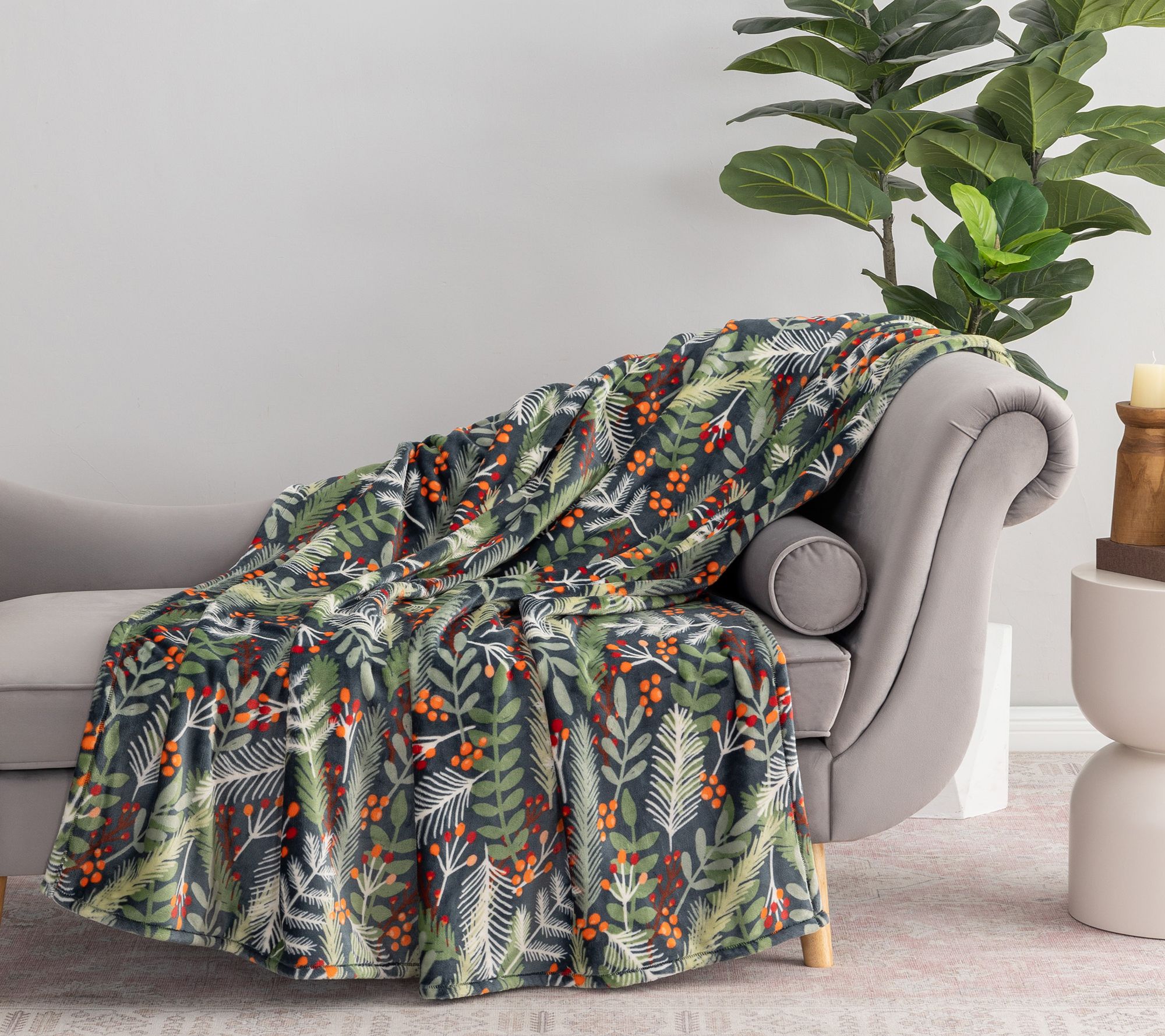 Make the season even softer. Holiday evenings feel extra inviting when seasonal prints come together with plush comfort in this Artist Series decorative throw from Berkshire. Whether draped over your favorite chair or kept handy for snuggling by the fire (or even wrapped at the base of your tree!), its festive motif is sure to spark joy -- and conversation. It's a cozy companion for holiday movie nights or a cheerful accent for guest spaces, too. From Berkshire Blanket.