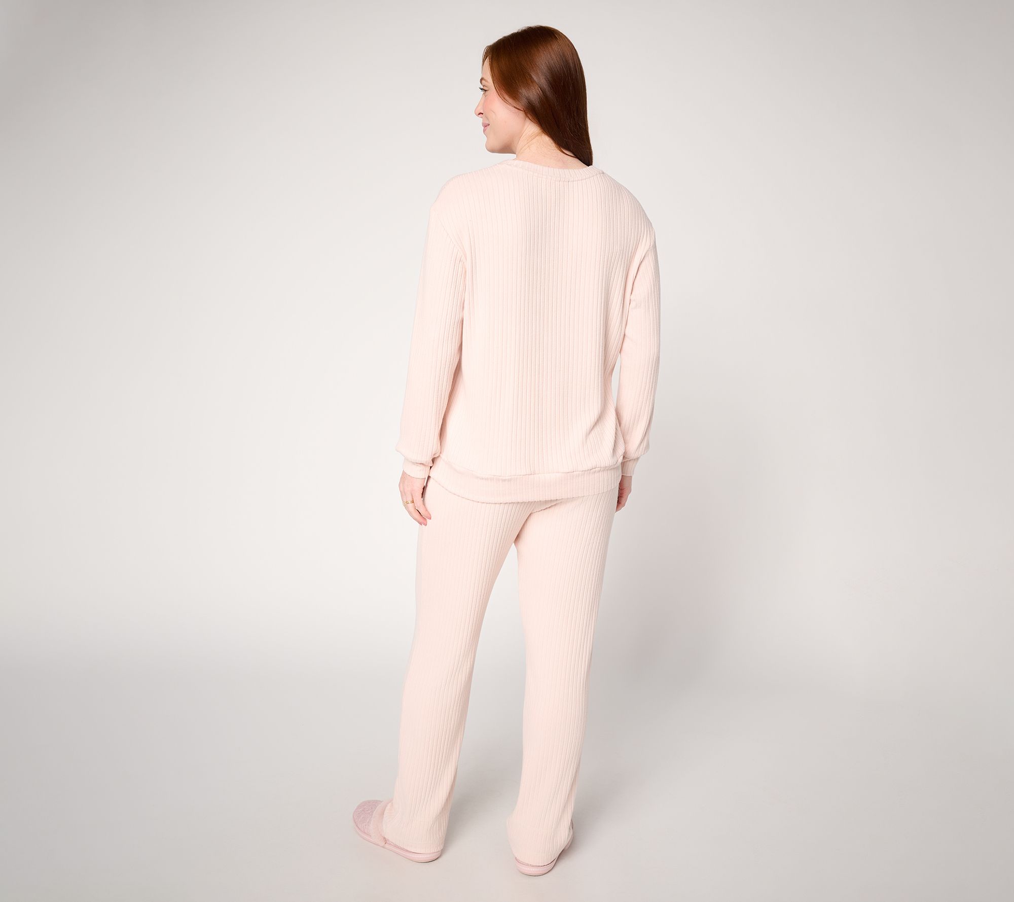 Gentle ribbing = total relaxation. Cozy up after a long day or start your morning in this soft, sumptuously ribbed set. The classic crewneck pairs with versatile drawstring pants, making downtime delightfully comfy whether you're catching up on your favorite shows or reading a book. From Berkshire Homewear.
