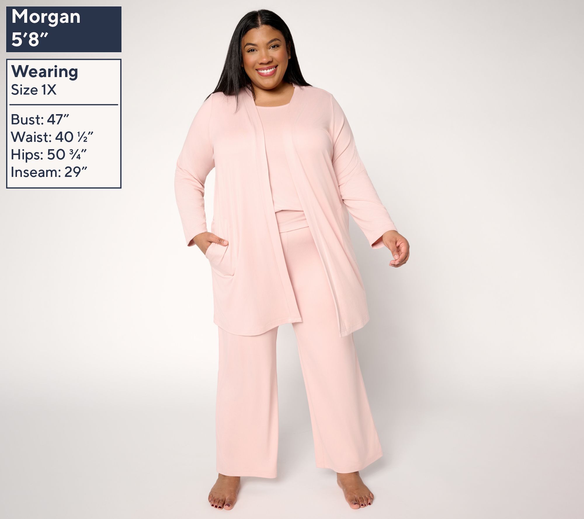 • Includes tank, cardigan robe, and pants
