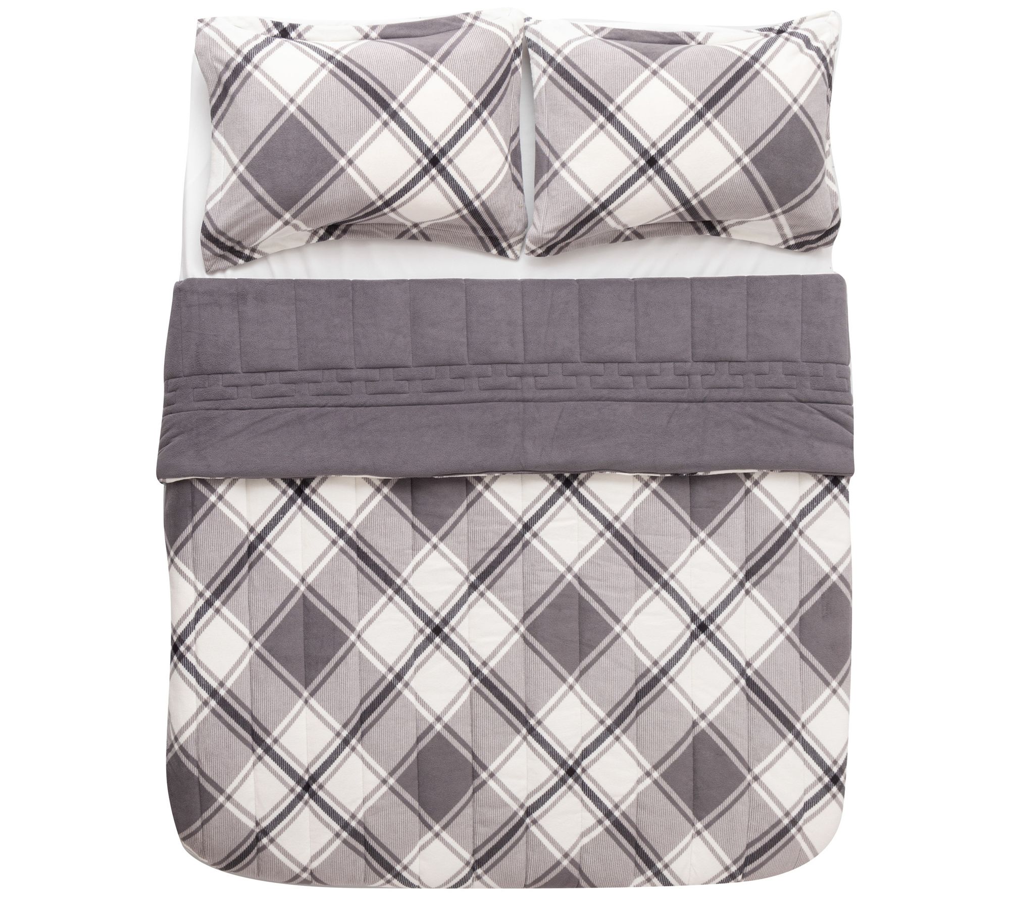 "As Is" Berkshire Polarfleece Diamond Plaid ComforterSet QN