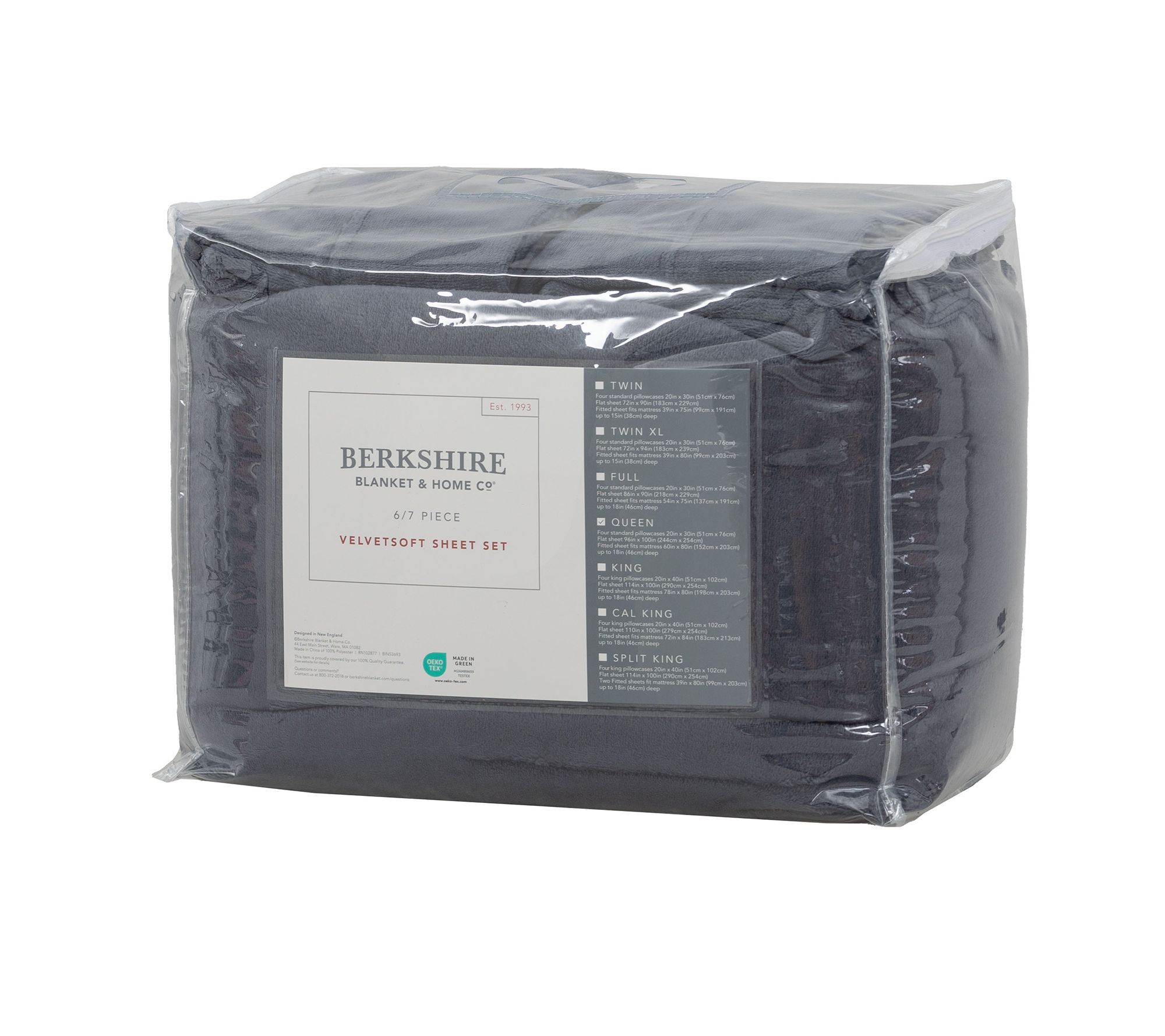 • Queen sized: Flat sheet 96" x 100"; Fitted sheet 58" x 78" x 18" pocket depth; Pillowcases 20" x 30"