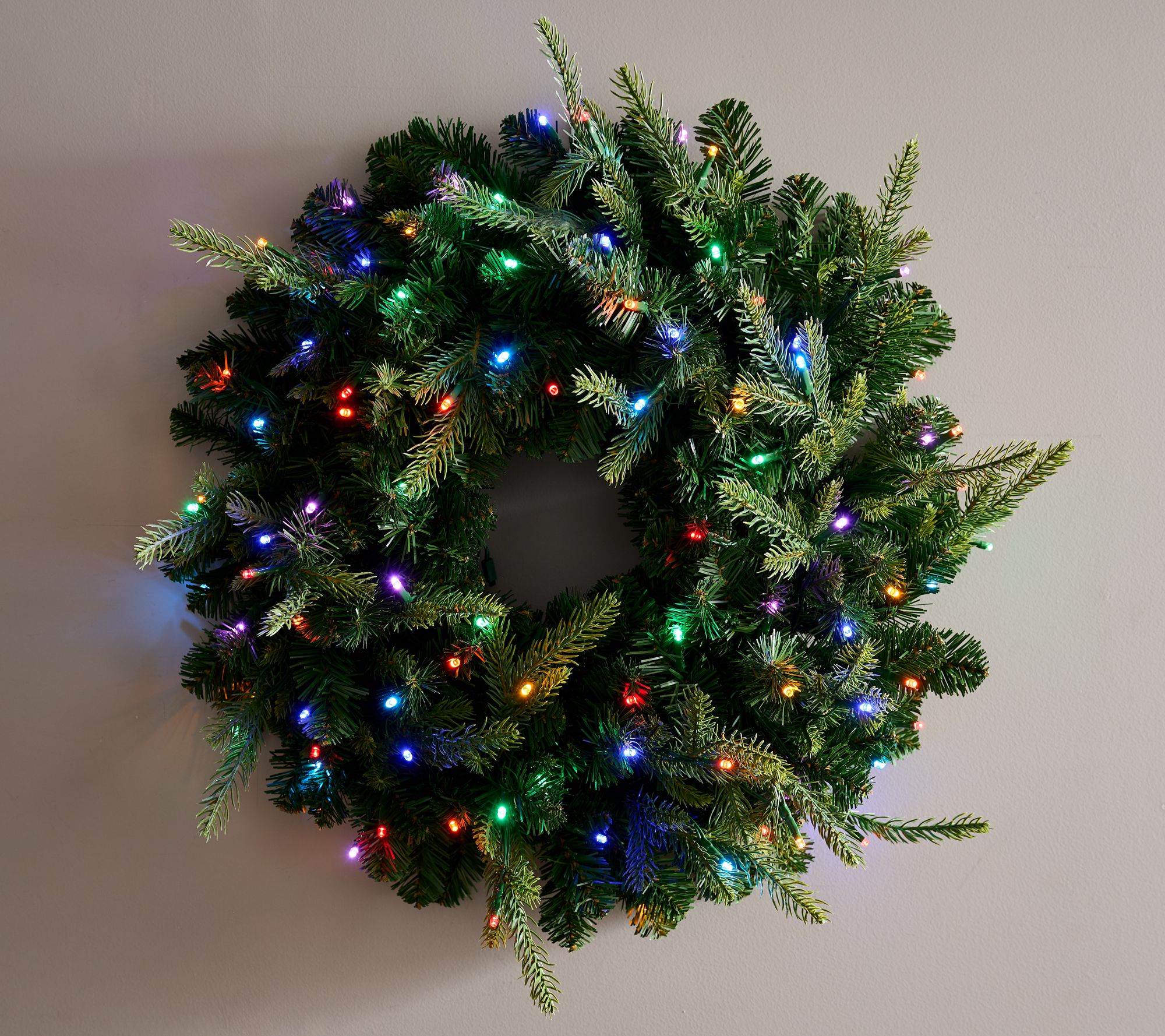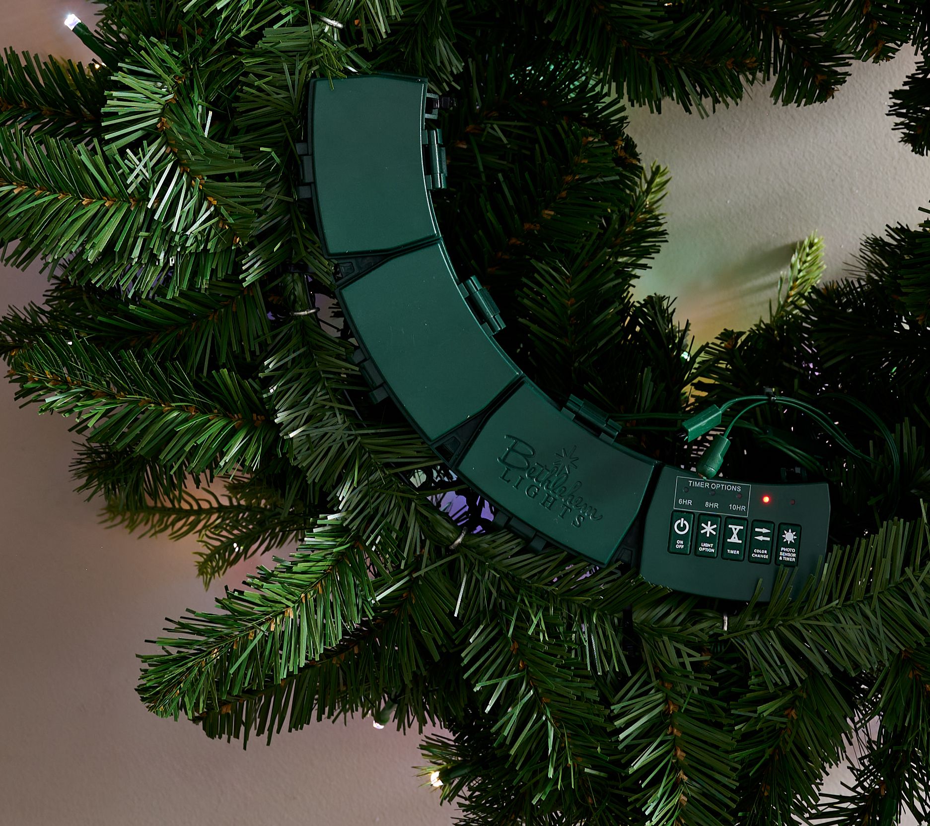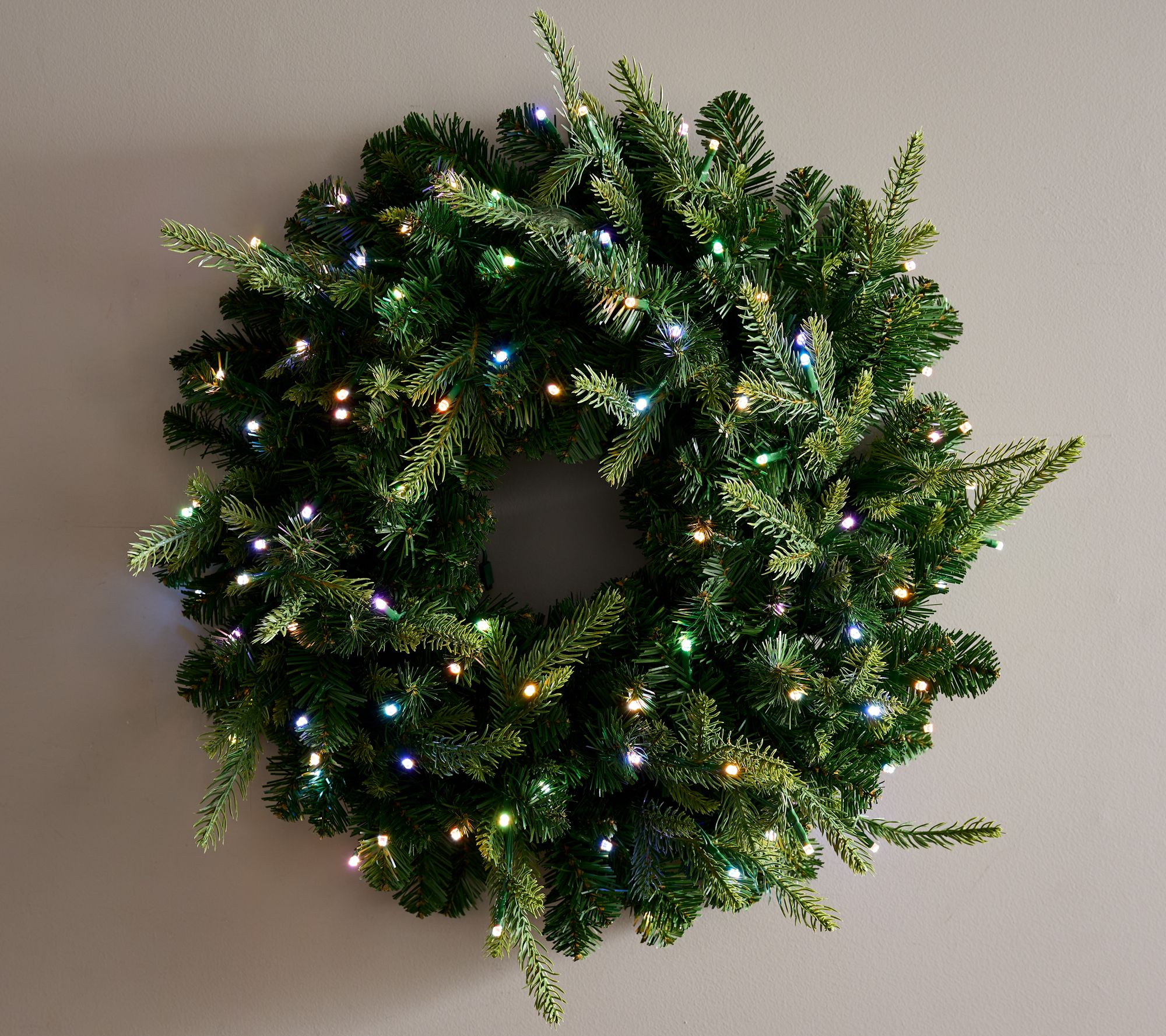 So. Many. Options. Set the mood for any merry moment with this prelit wreath. Featuring micro-LED lights with 4-in-1 color options, a variety of light functions, adjustable dimness, and several timers, arranging it to suit your space is just part of the festive fun. From Bethlehem Lights.