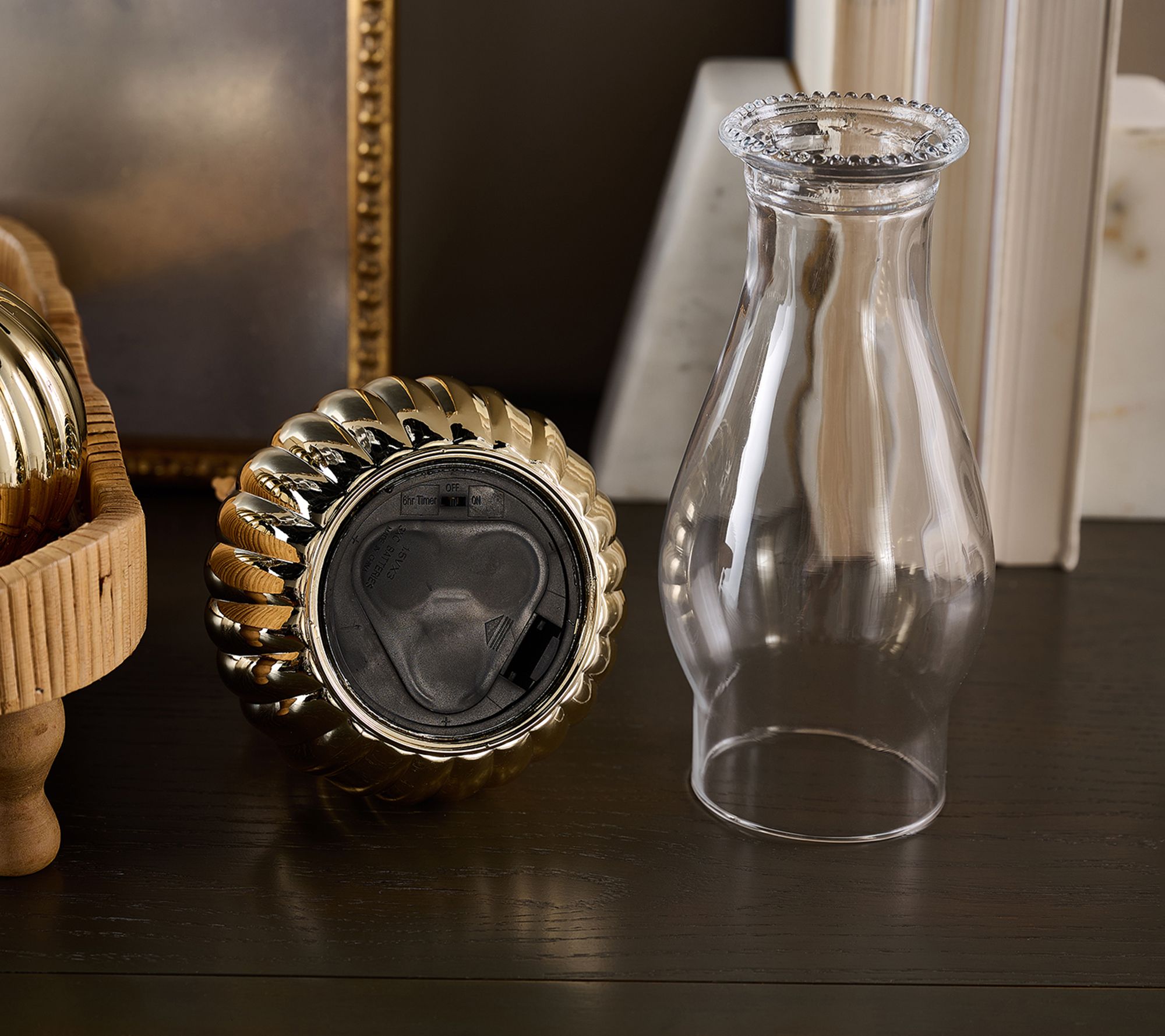 • Includes two faux oil lamps