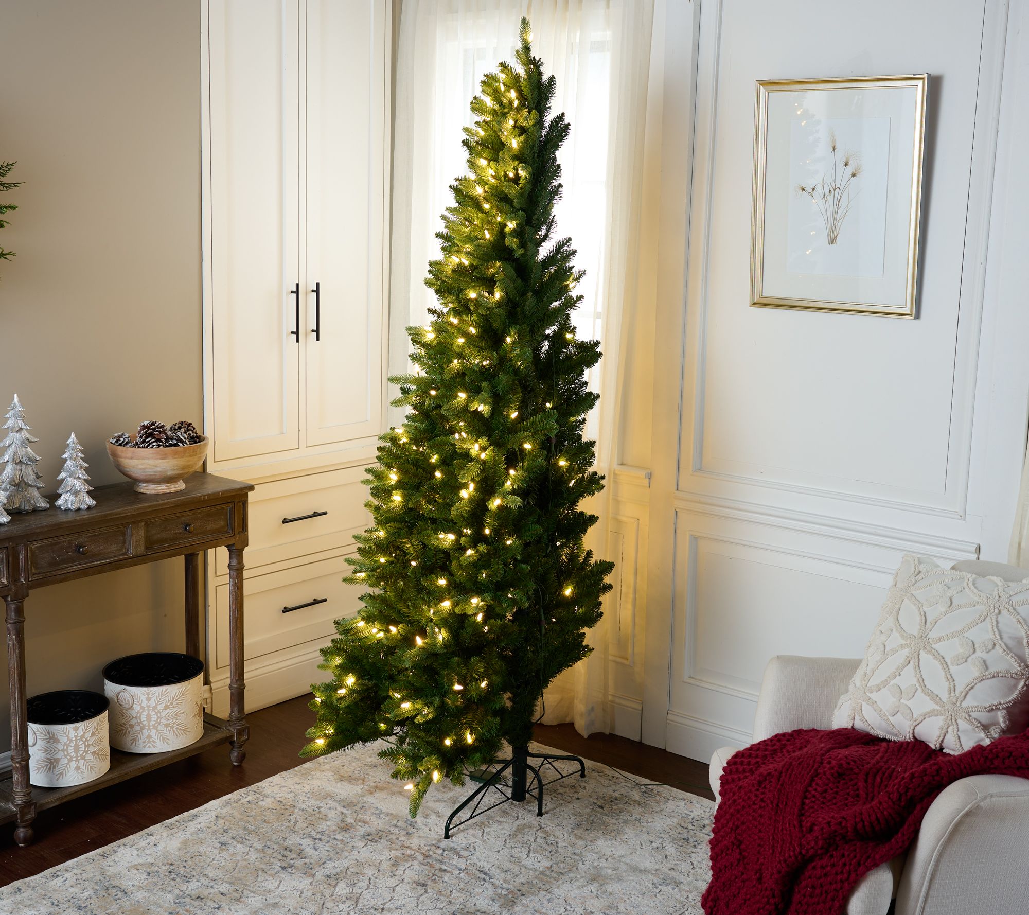 • Includes lifelike prelit half tree, stand, and gloves