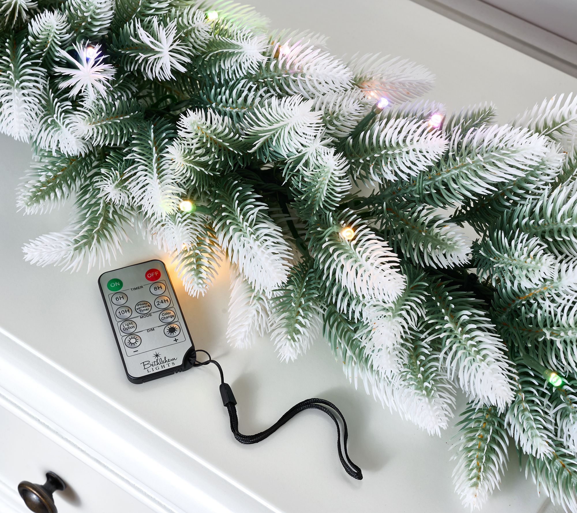 • Includes lifelike pine garland and remote with battery