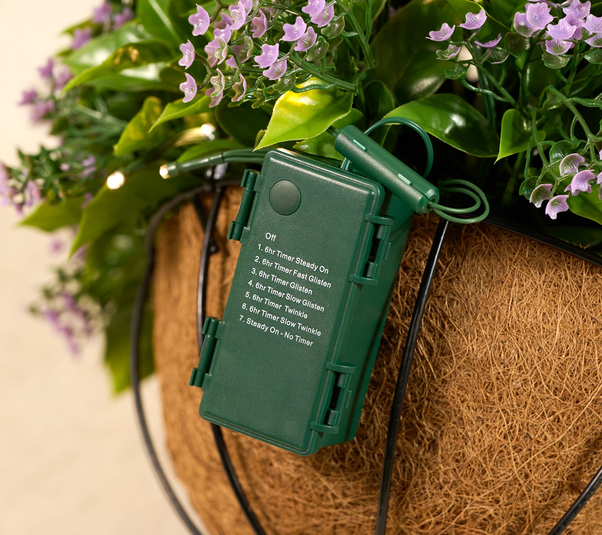• Illuminated hanging basket with wispy florals