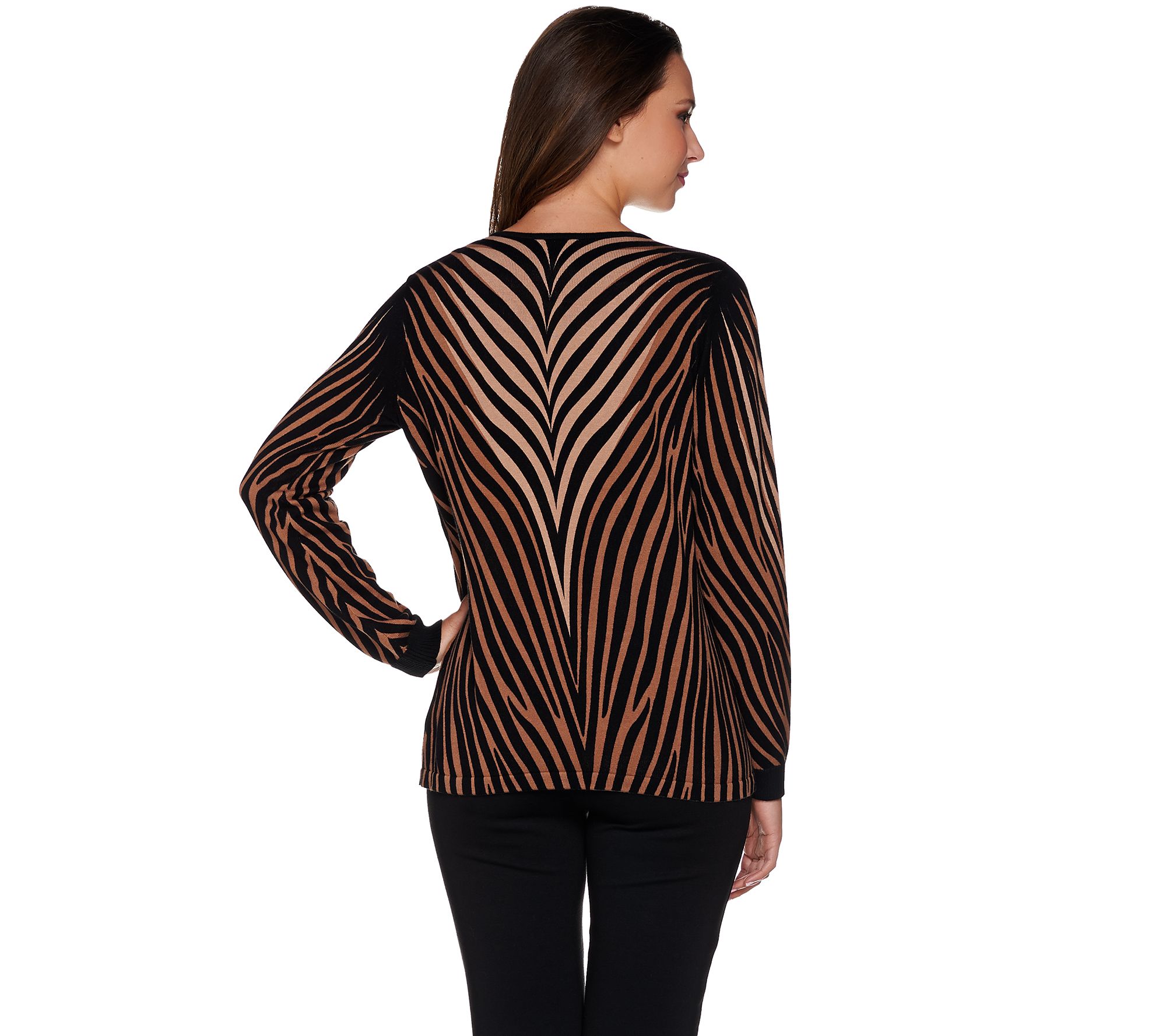 "As Is" Bob Mackie's Printed Sweater with Jeweled Neckline