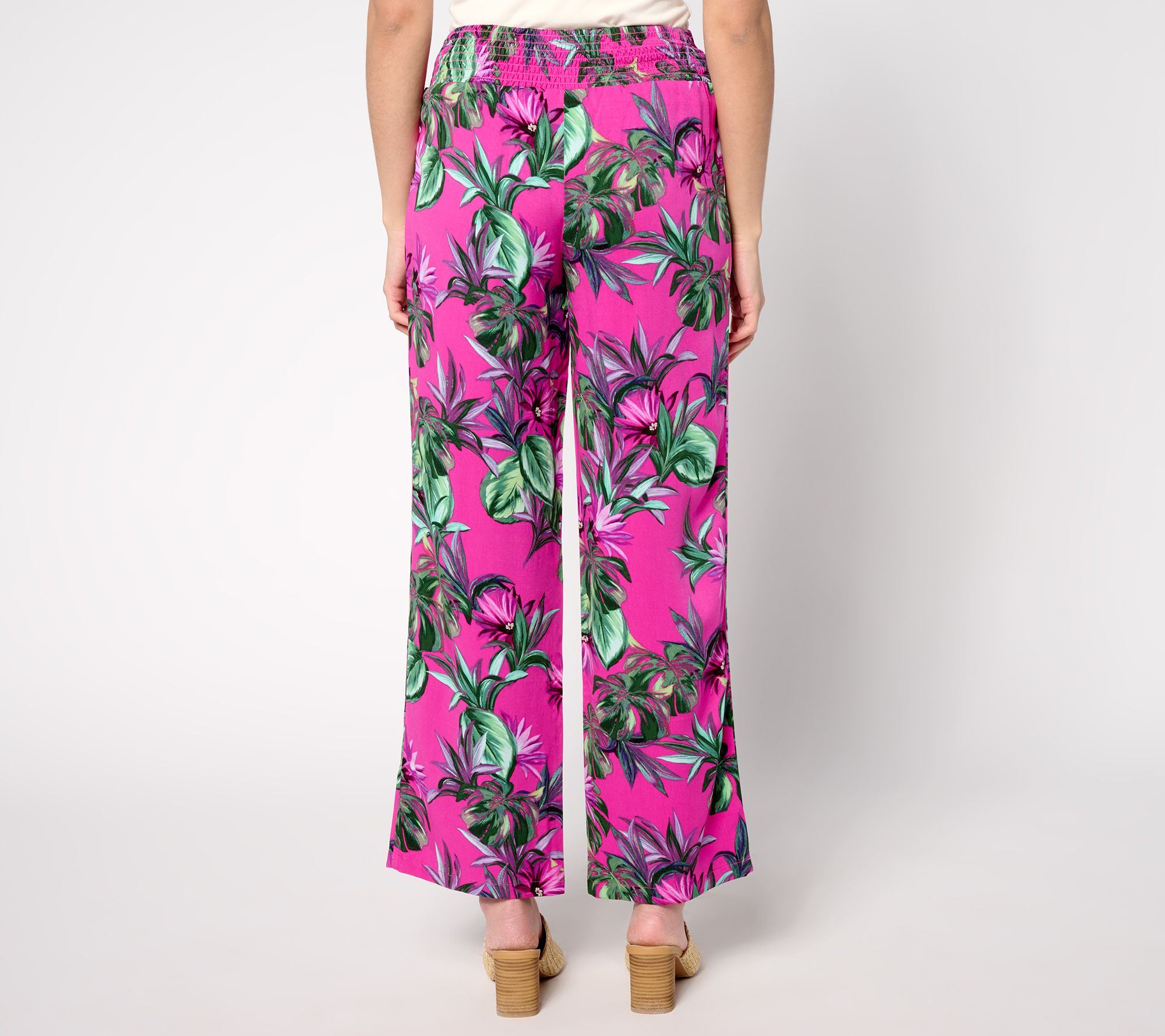 • Features: slash pockets, flat front waistband, smocked back elastic waistband