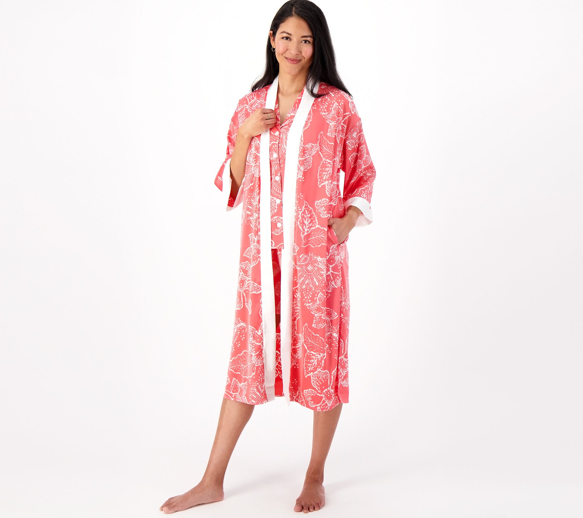 Playfully printed, this dreamy duster keeps you covered up when lounging is on the schedule -- from coffee on the back porch to late-night movie marathons. From the Breezies® Intimates Collection.