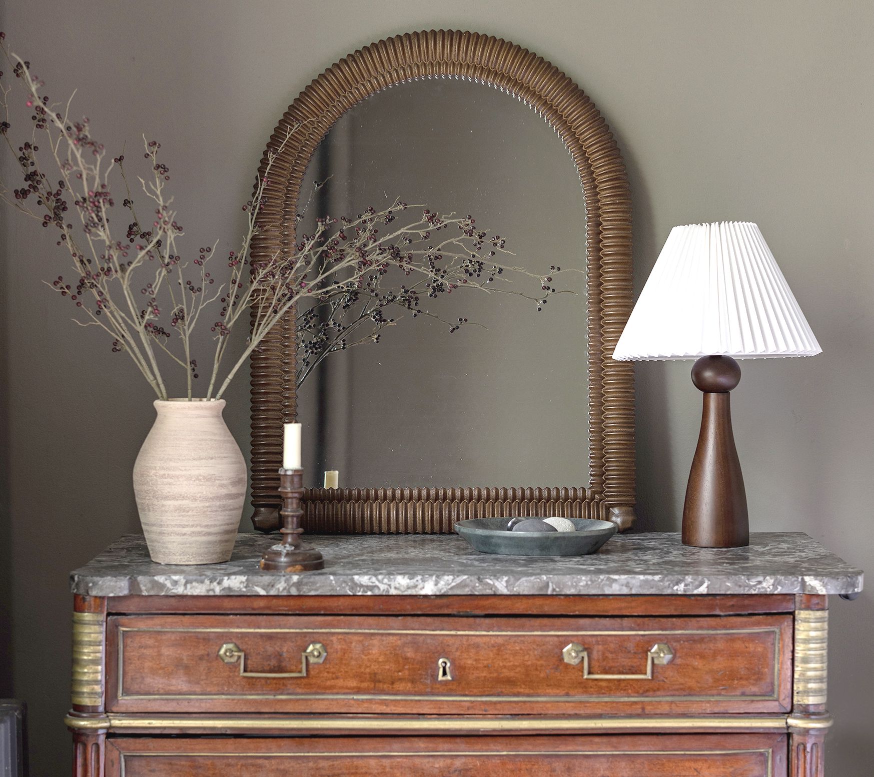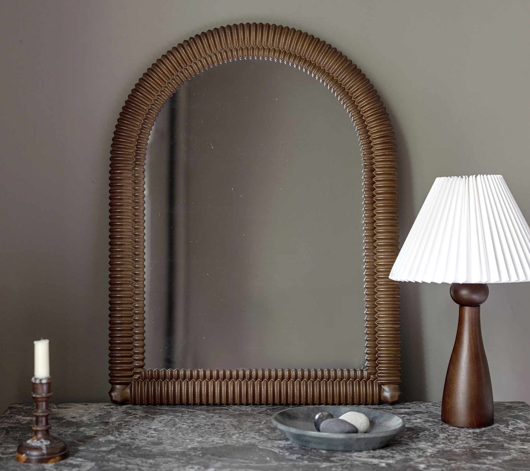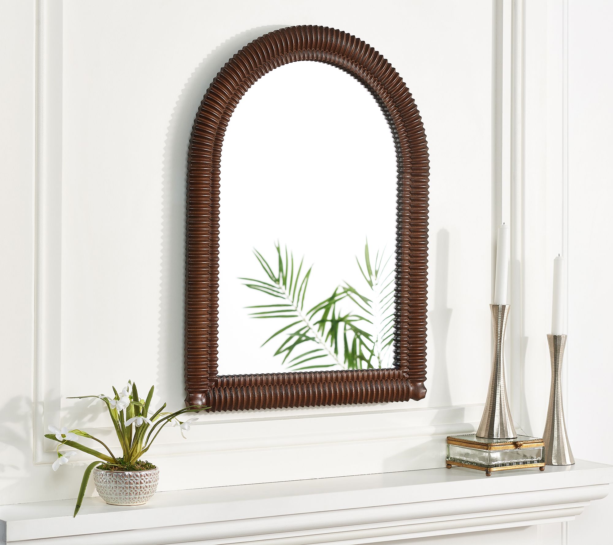 Classic and stylish, this arched wooden mirror can be styled in your living room, entryway, or hanging above a mantel. From Bright Bazaar.