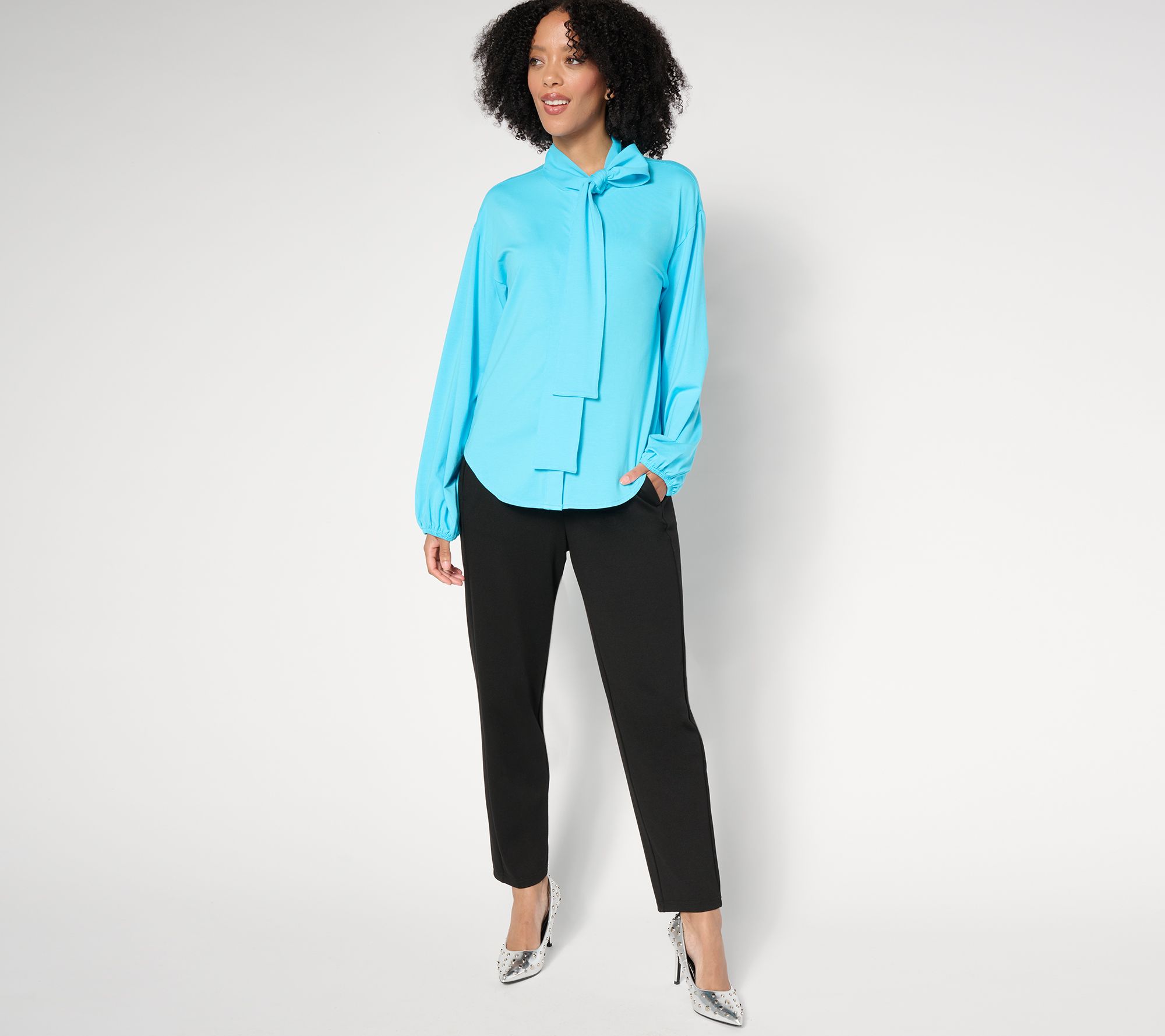 "As Is" by Stacy London Jersey Knit Bow Blouse