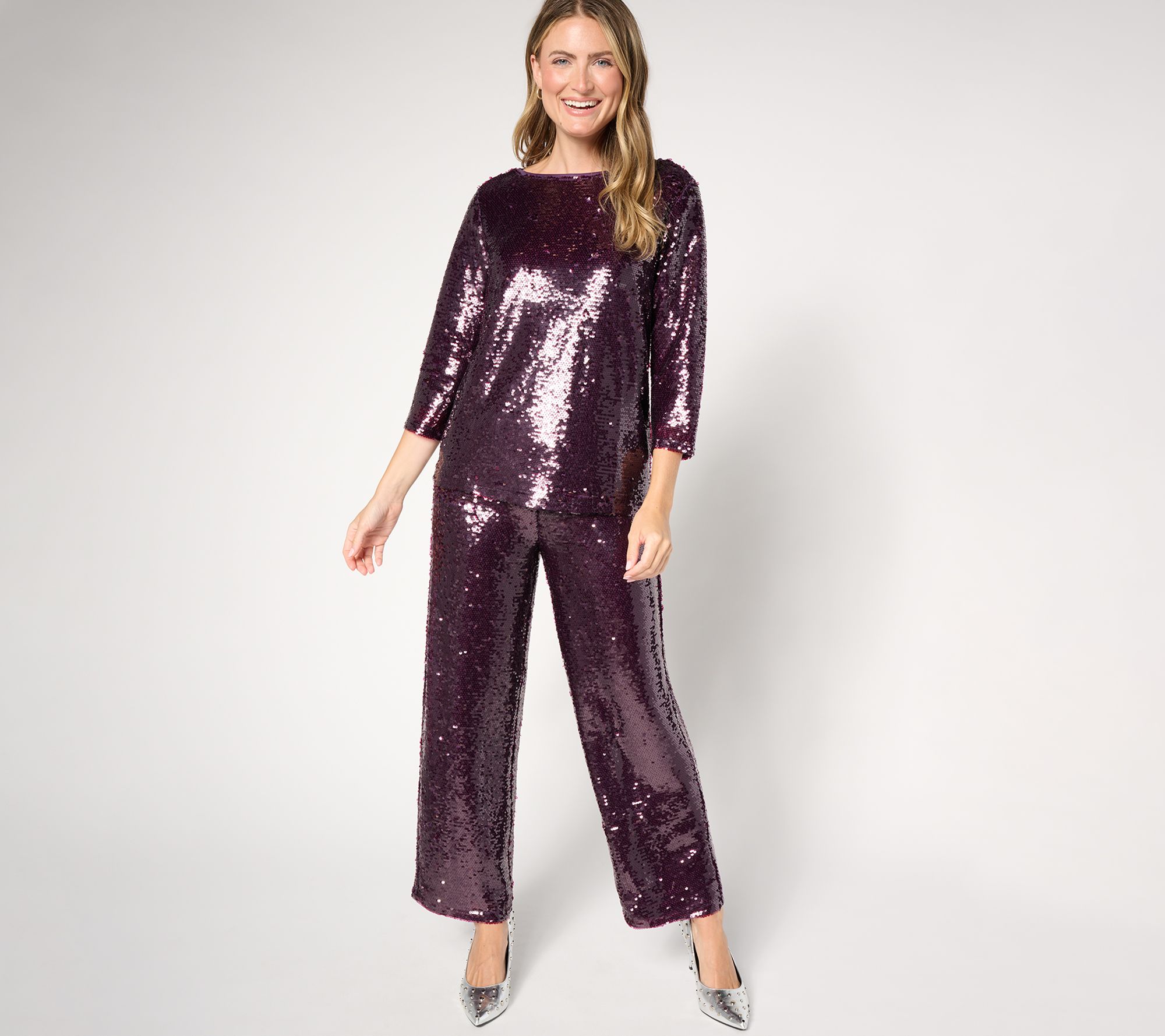 Shine all day and dance all night in this long-sleeve foundation top. Sparkly sequins are a fabulous and fun detail that makes this top a standout piece for any occasion. From by Stacy London.