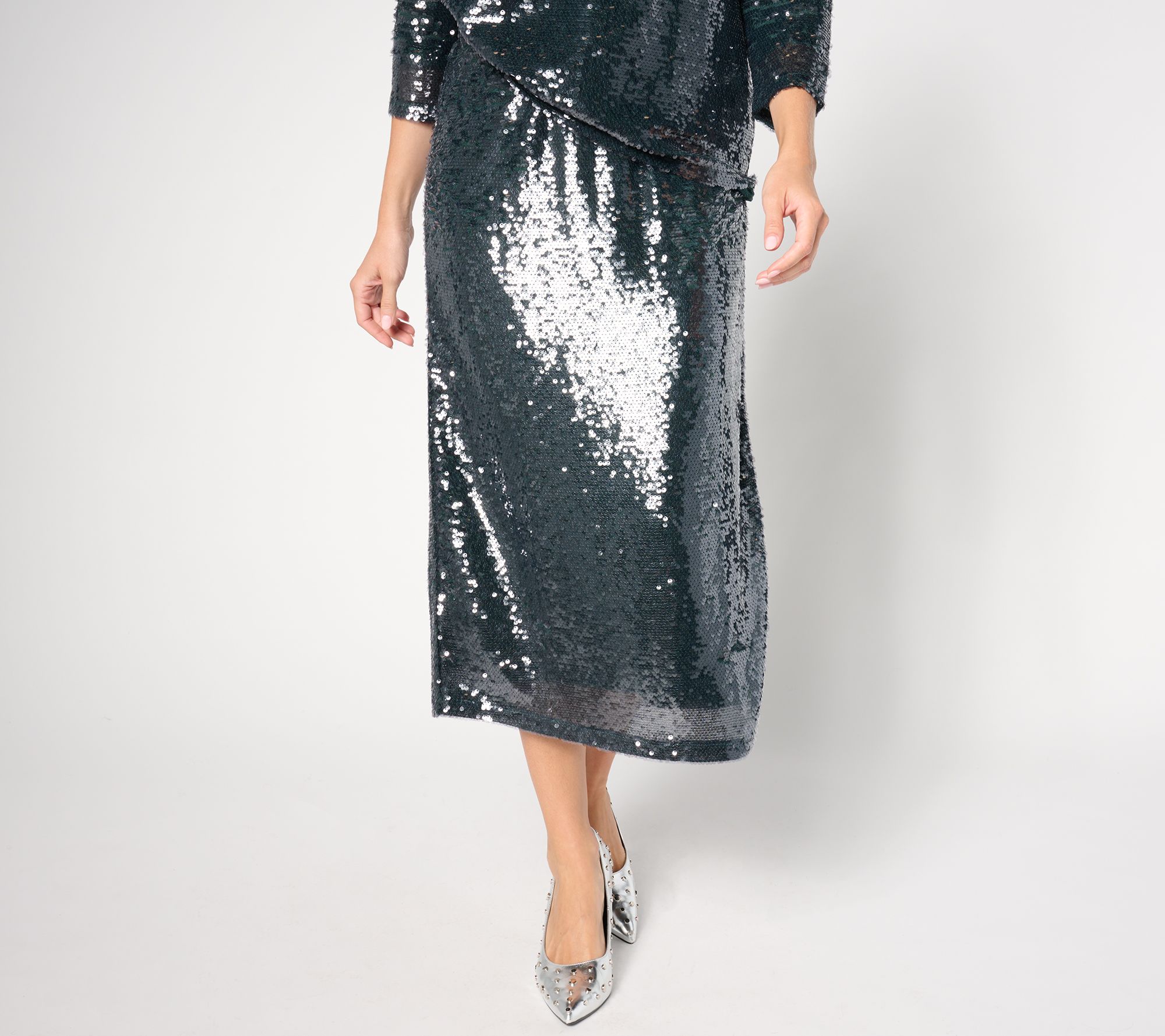 "As Is" by Stacy London Regular Sequin Pull On Midi Skirt