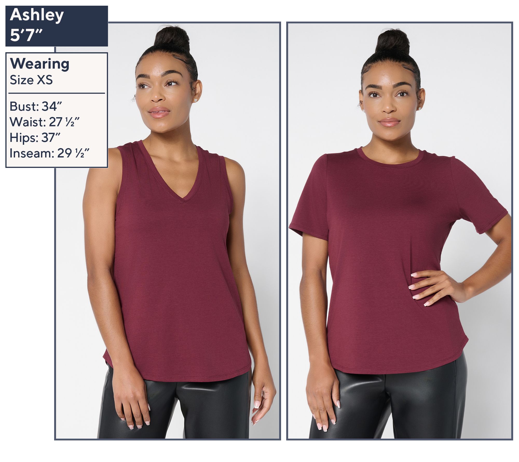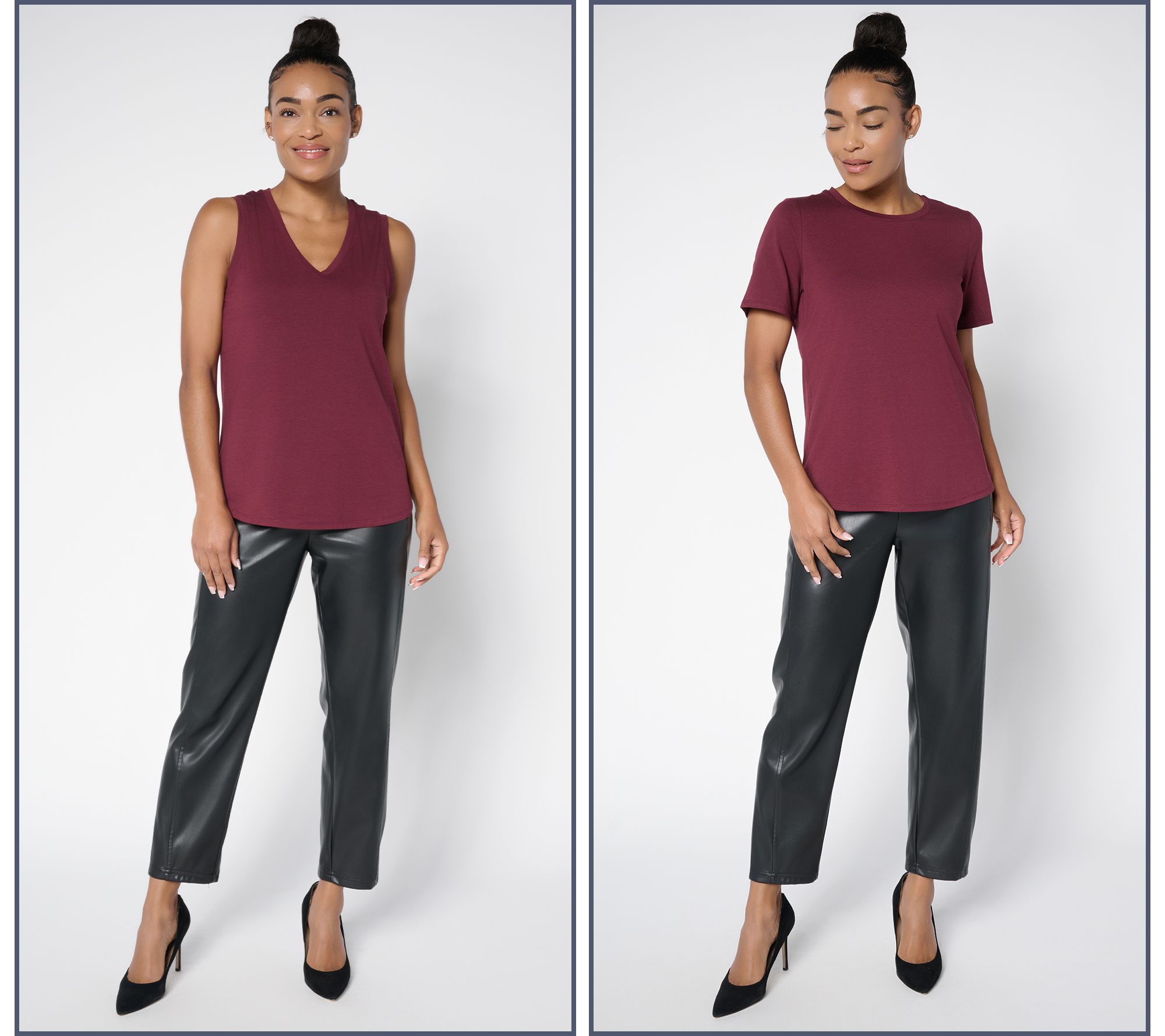 Whether you’re heading out for errands or relaxing at home, this two-pack tank and tee set offers versatile style for any occasion. The knit tank features a flattering V-neckline, while the classic crew-neck tee brings effortless comfort to your wardrobe. From by Stacy London.