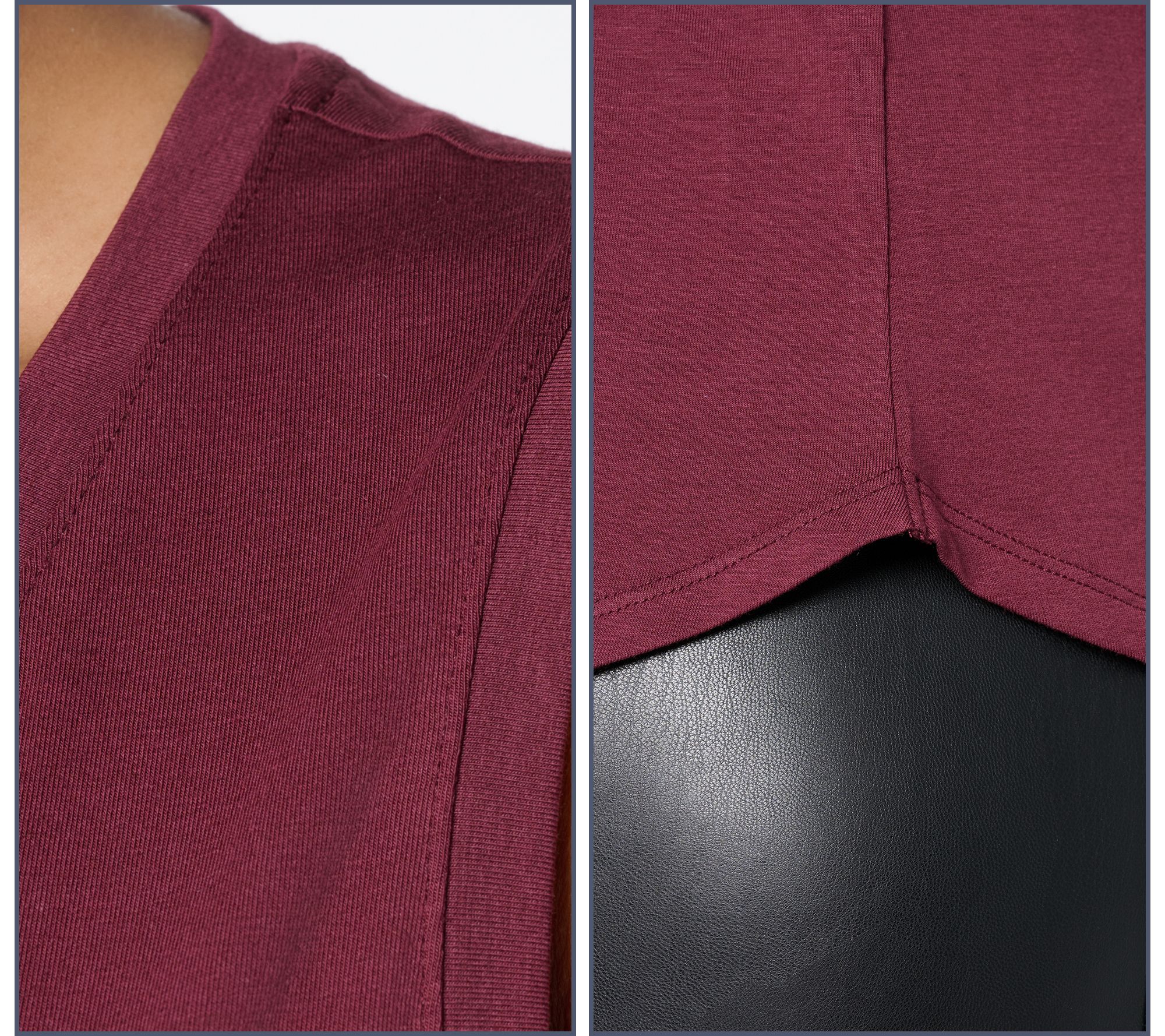 Tee Features: crew neckline, set-in self binding, turnback hem