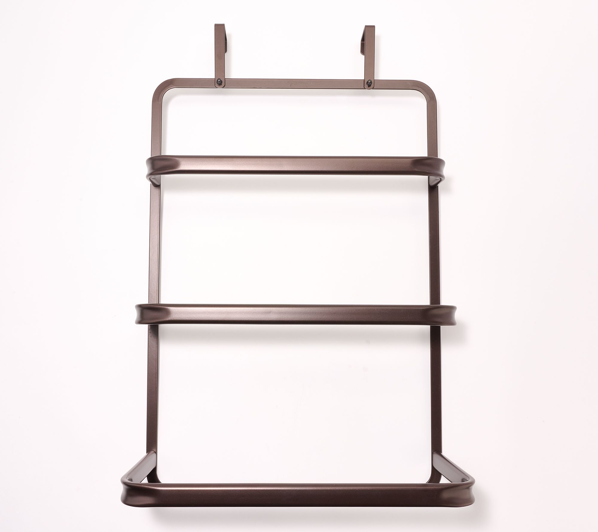 Motivate your crew to hang up wet towels before exiting the bathroom with this convenient over-the-door towel rack. The stylish powder-coated steel design is also ideal for stocking fresh linens for guests. From CellaTM.