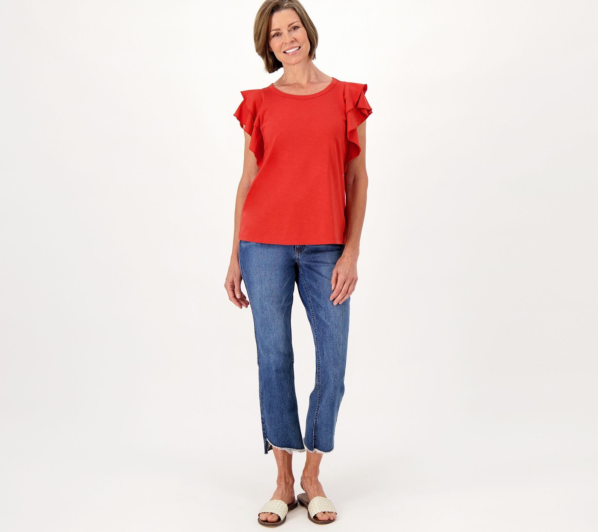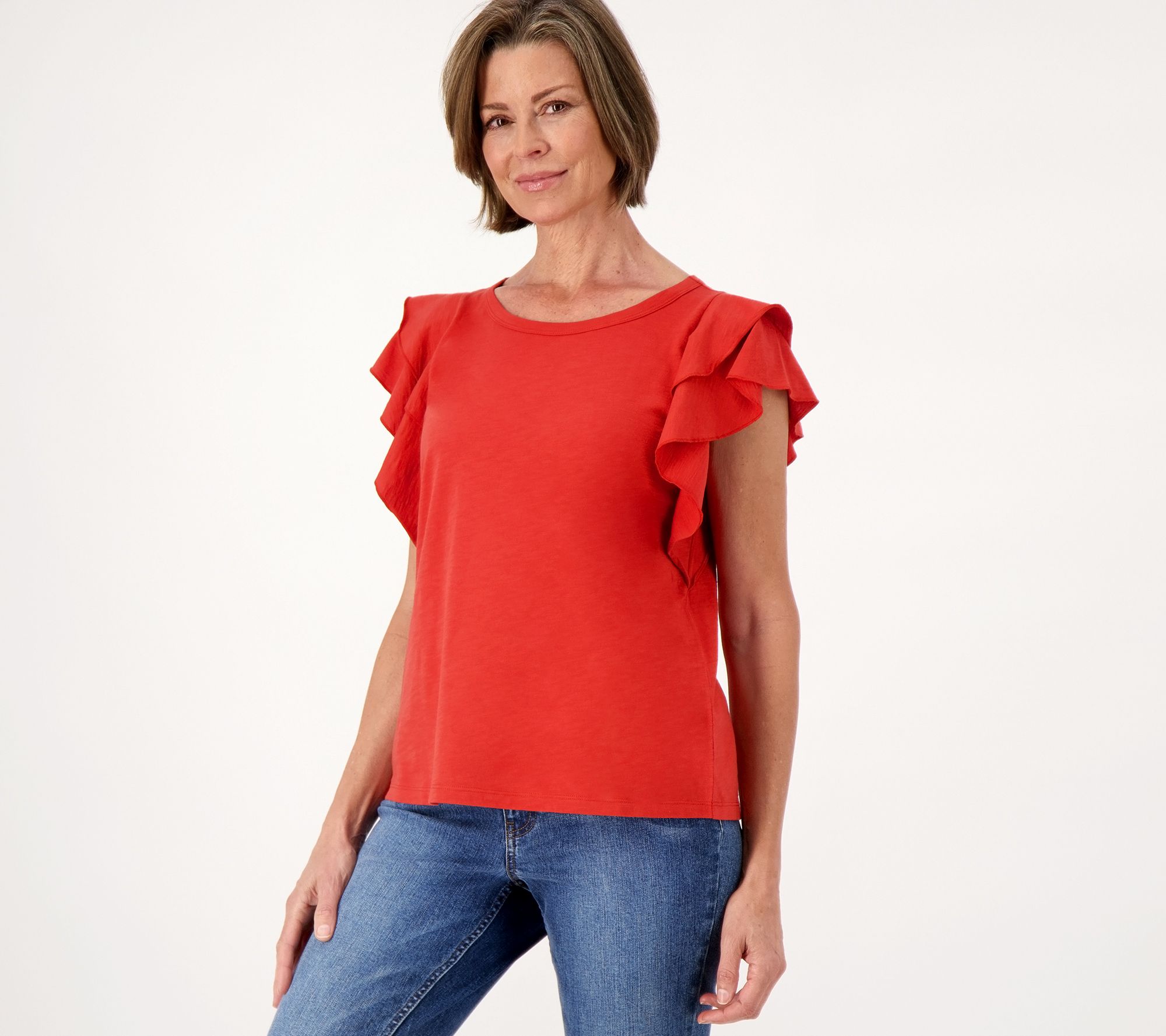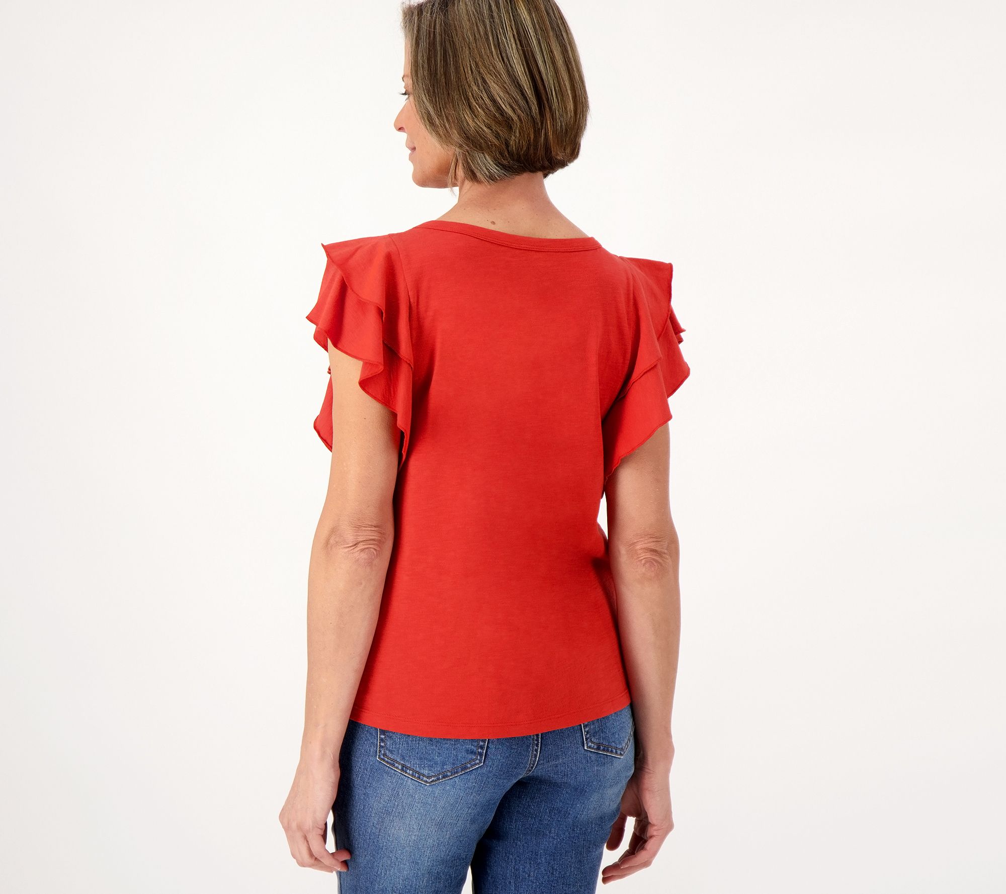 "As Is" Candace Cameron Bure Breezy Cotton Double Flutter Sleeve Top