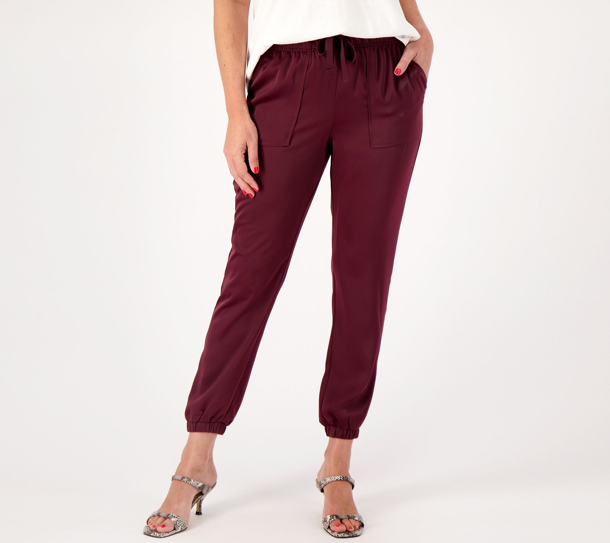 These satin joggers combine comfort with chic style, for an effortlessly on-trend look that. They pair well with everything from sweaters to bodysuits, and add instant glam to your outfit. From Candace Cameron Bure.