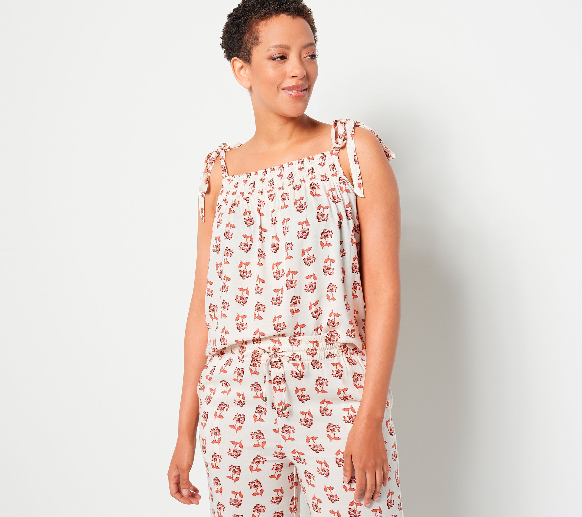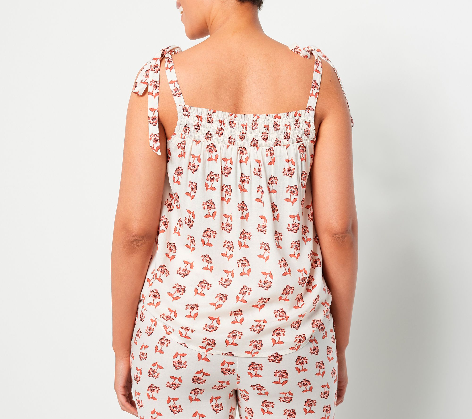 "As Is" Candace Cameron Bure Printed Tie Strap Smocked Woven Tank