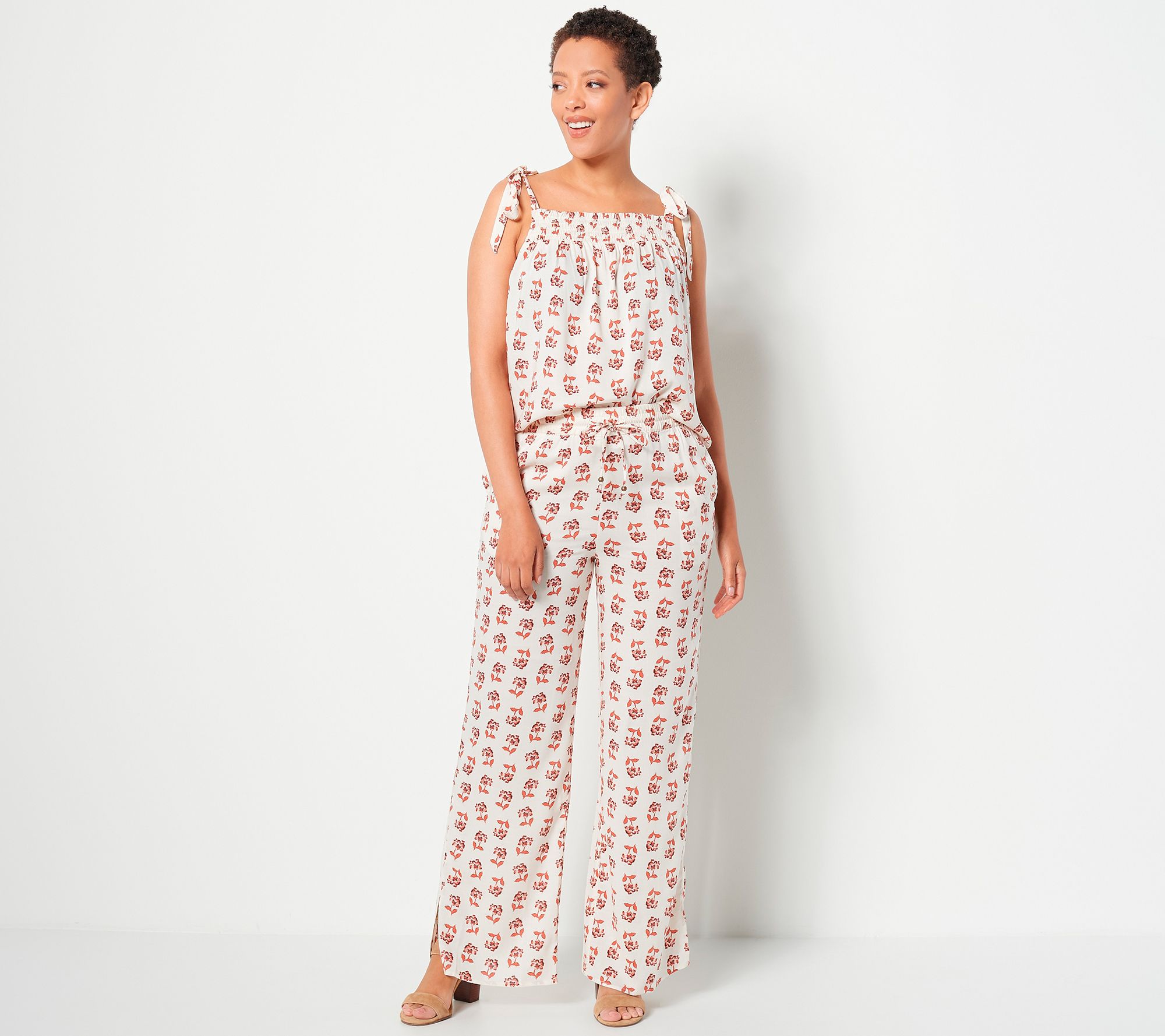 This laid-back summer top is just-right for all the picnics, barbecues, and outdoor events you'll be attending this season. A fresh feminine print, tie straps, and smocking detail are flirty features you'll love to show off. From Candace Cameron Bure.
