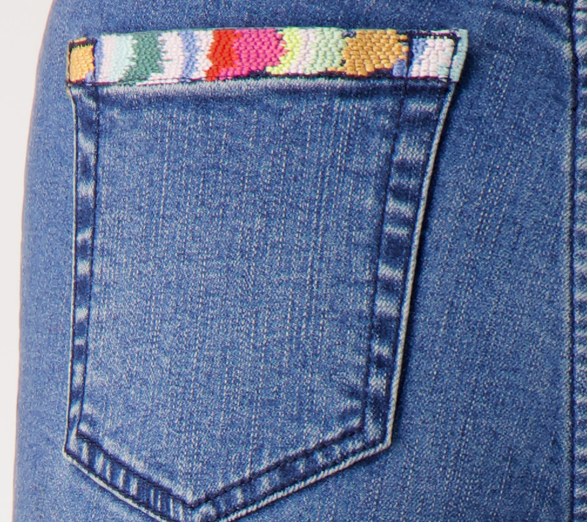 • Features: ankle length, embroidery on back pockets, rivet detail at coin and front scoop pockets