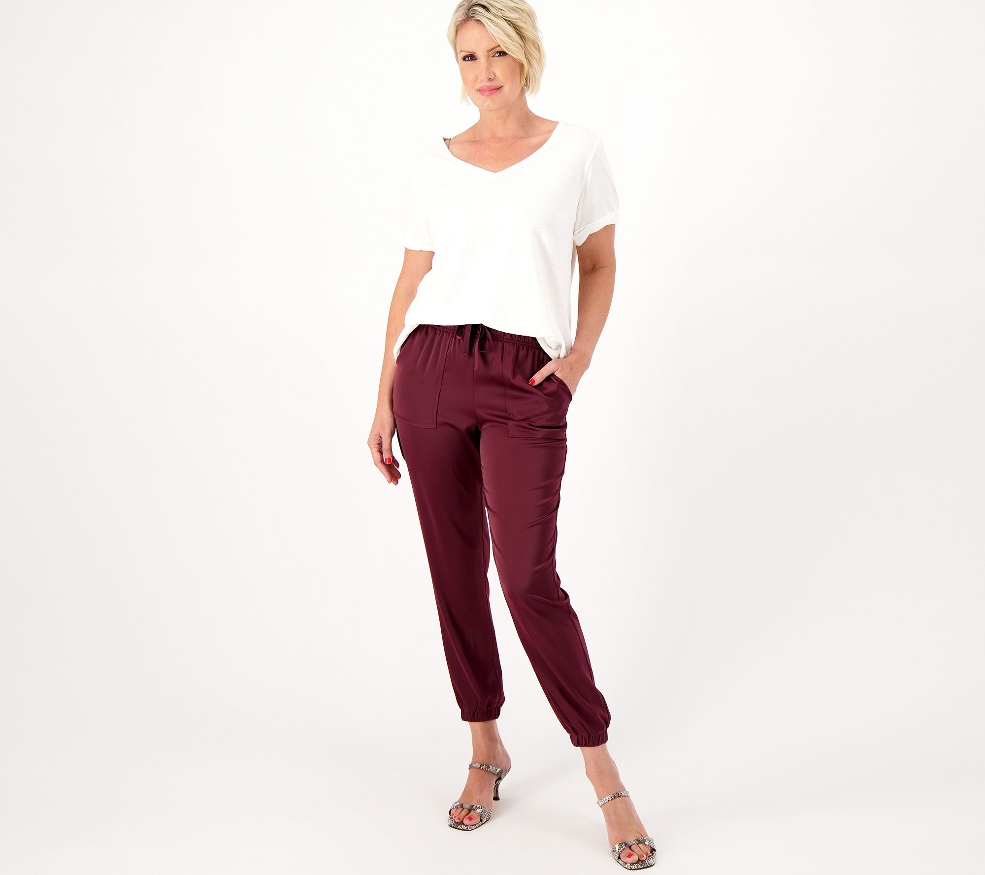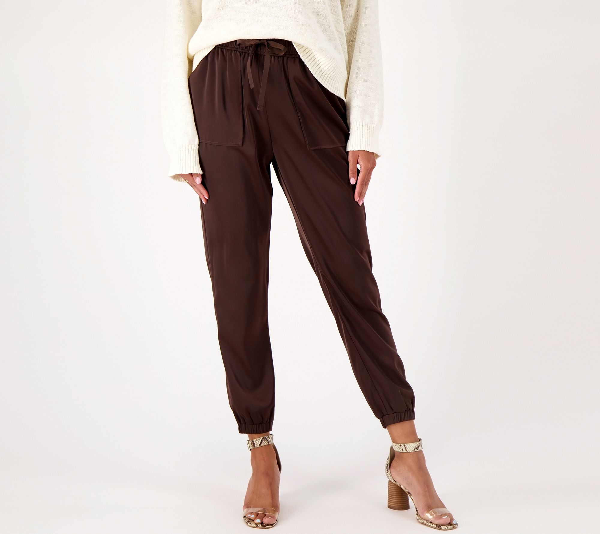 These satin joggers combine comfort with chic style, for an effortlessly on-trend look that. They pair well with everything from sweaters to bodysuits, and add instant glam to your outfit. From Candace Cameron Bure.