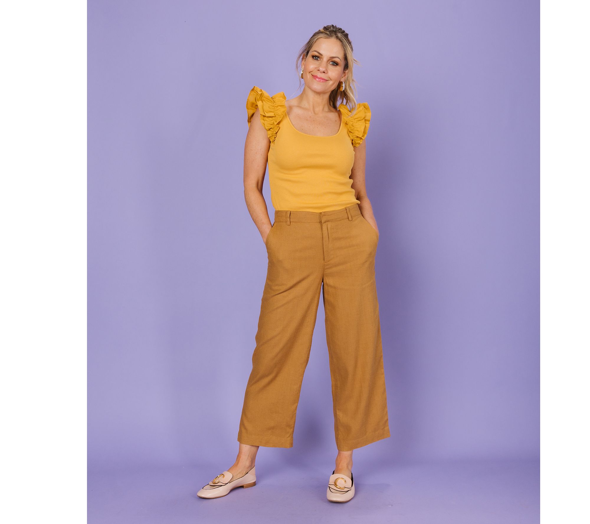Your social calendar is dotted with events that require something easy and breezy. Enter these wide leg pants. Their classic design lends itself to a cool look for fun days and nights. From Candace Cameron Bure.