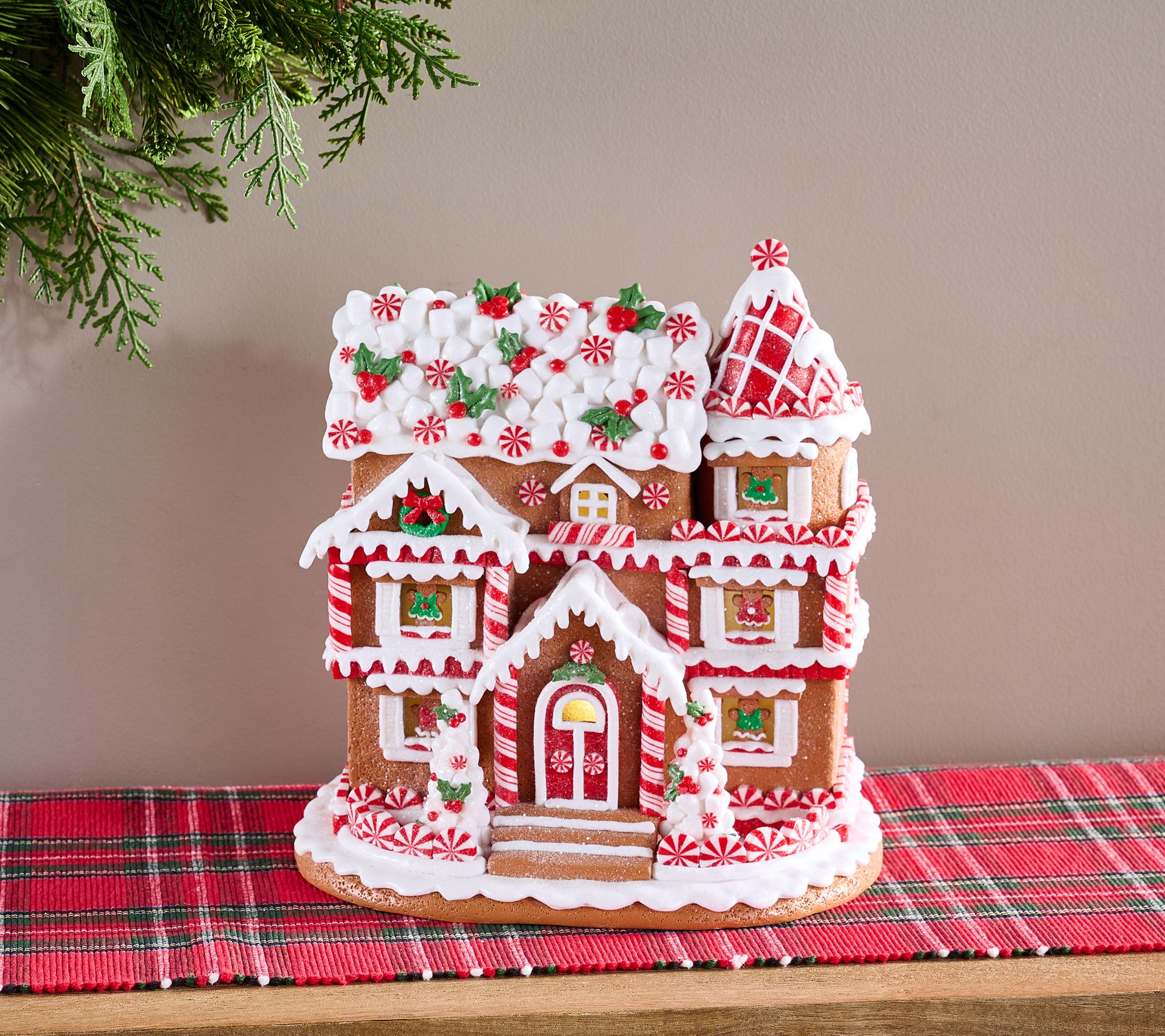 Home sweet home! When you're not out caroling, shopping, or searching for the most spectacular Christmas displays, pay a visit to Candy Cane Lane (right in your own space) with this sparkly illuminated gingerbread house. Sweetness greets you at door as you enter a world overflowing with expertly piped icing, peppermint accents, and sugary details (like gingerbread cookie windows!) that'll rival any baking show creation. From the Valerie Parr Hill Collection.