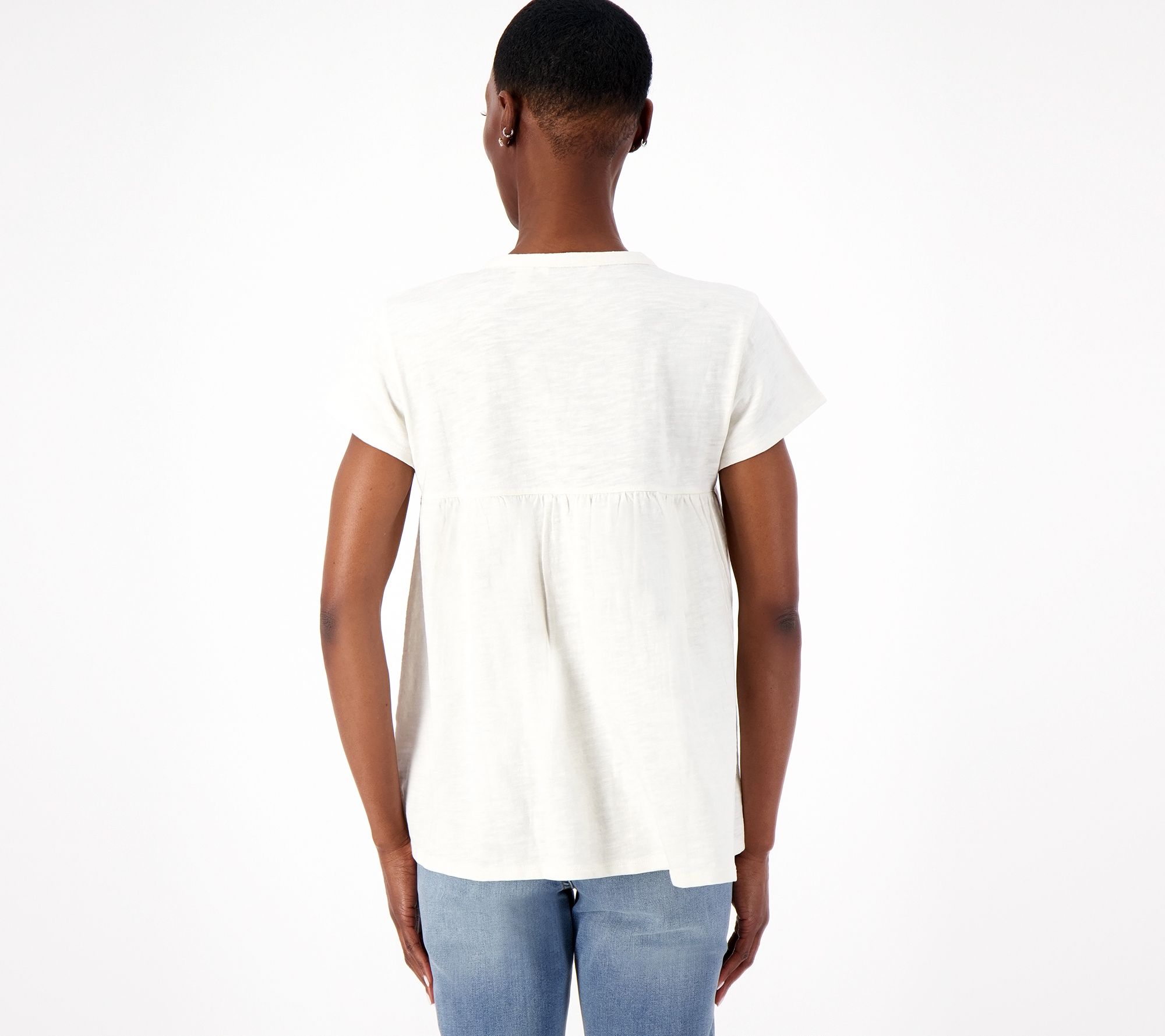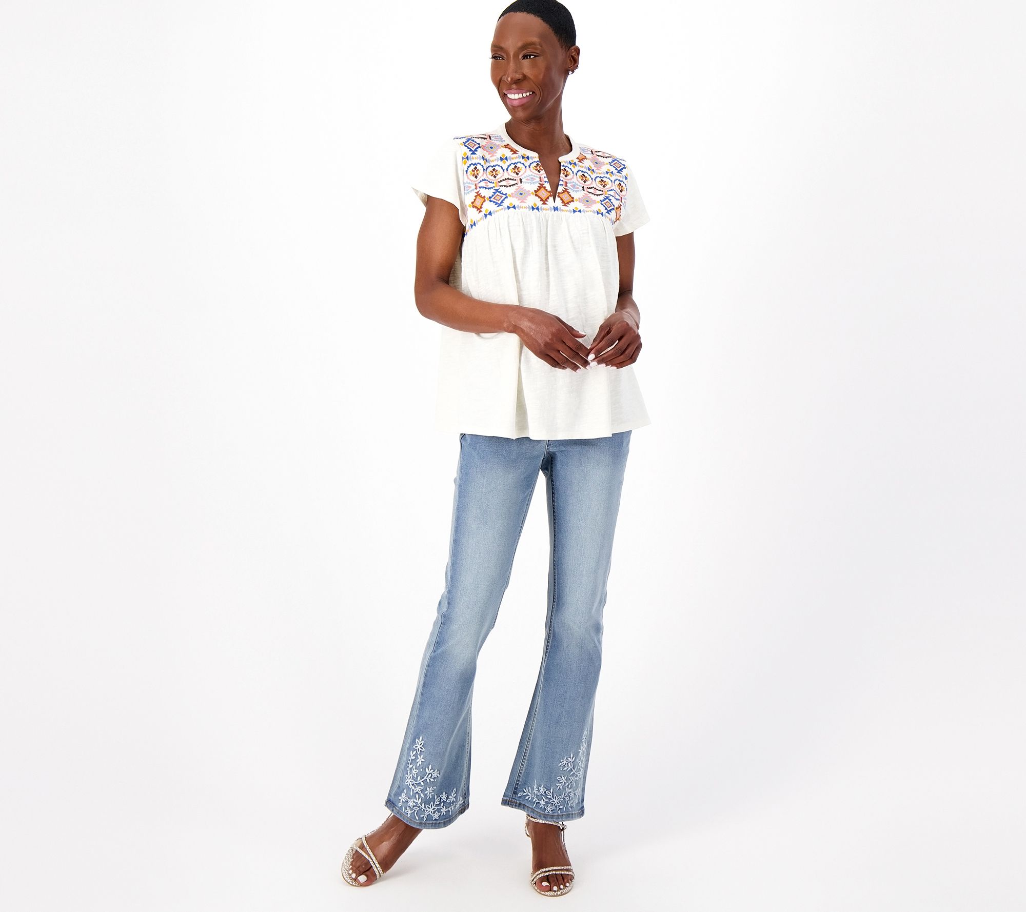 "As Is" Canyon Retreat Embroidered Cotton Slub V-Neck Top