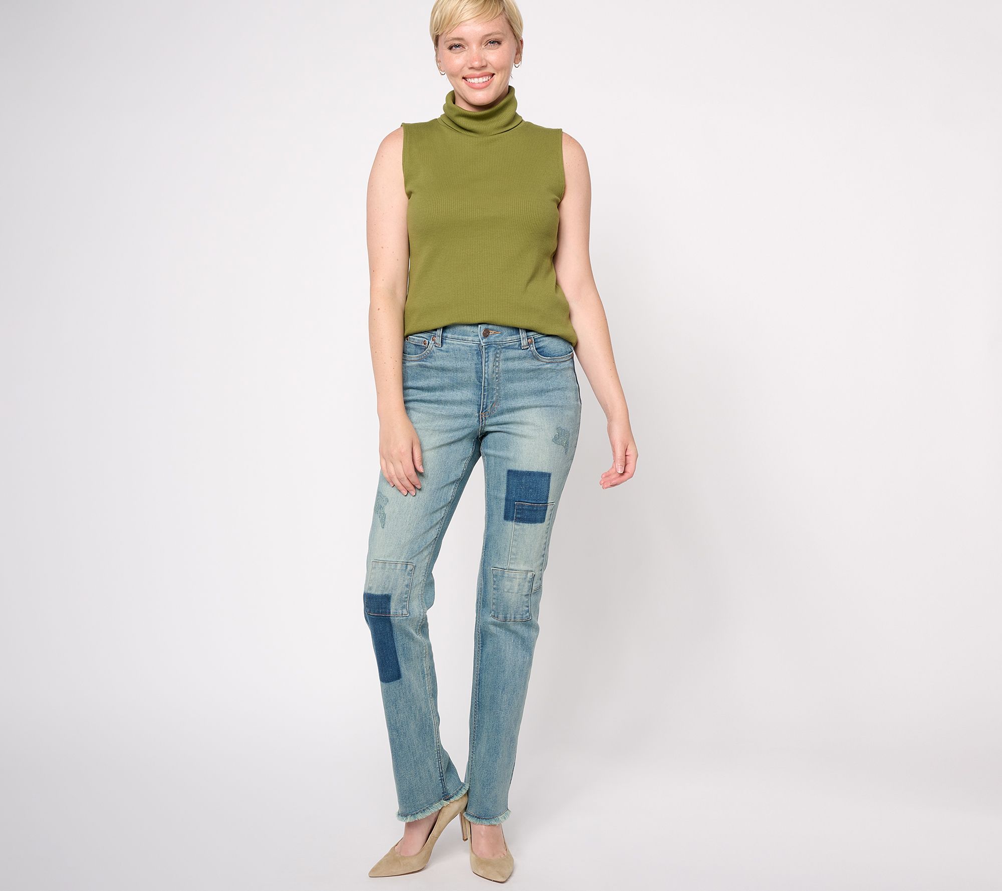 Make a statement in this straight-leg denim and add a touch of artful expression to your wardrobe. The trendy patchwork design is an eye-catching detail that demands attention. From Canyon RetreatTM.