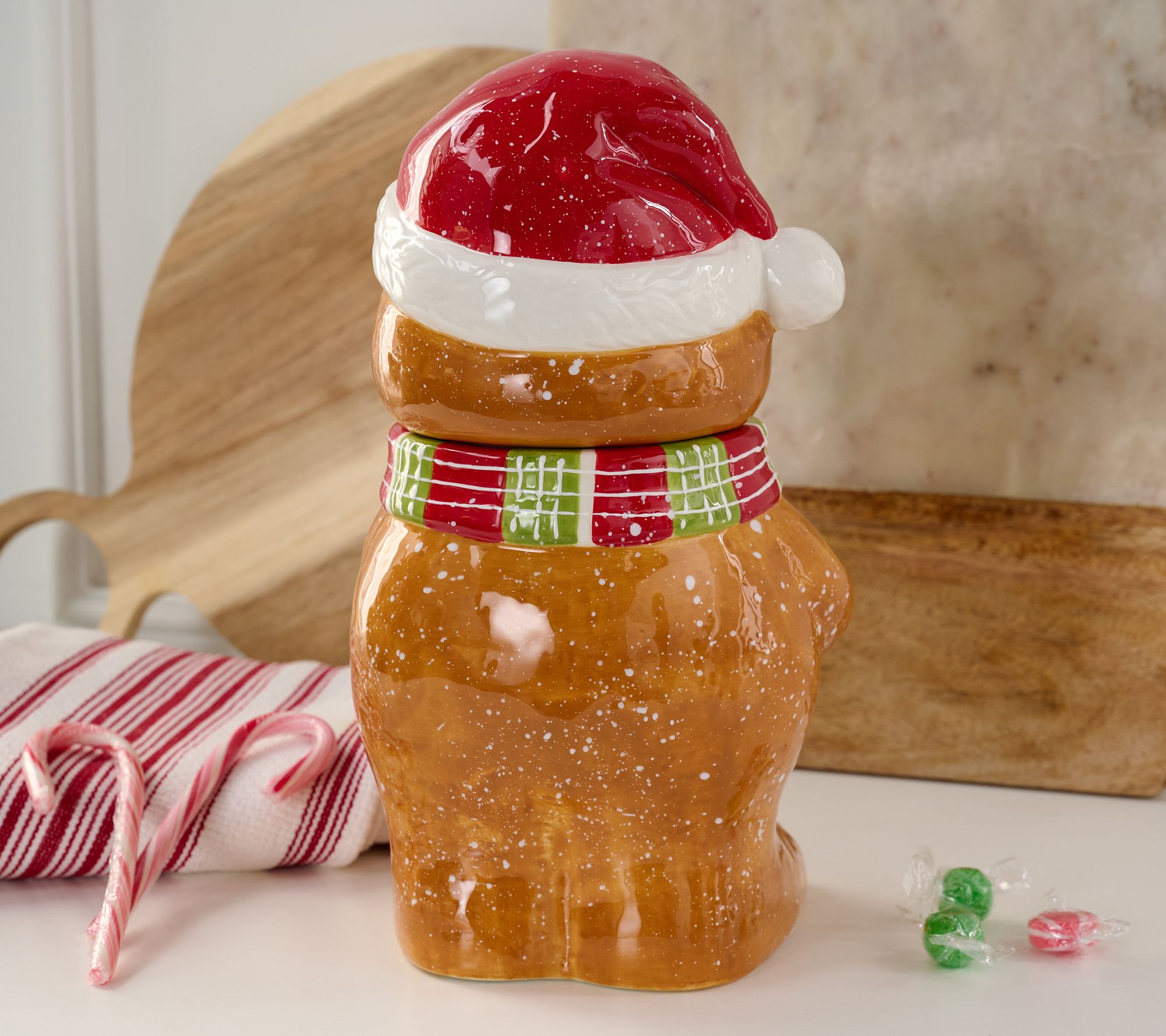 Yummy in the tummy! Holiday cheer is just a reach away when this whimsical gingerbread jar sits on your kitchen counter, ready to offer up cookies or treats. From the Valerie Parr Hill Collection.