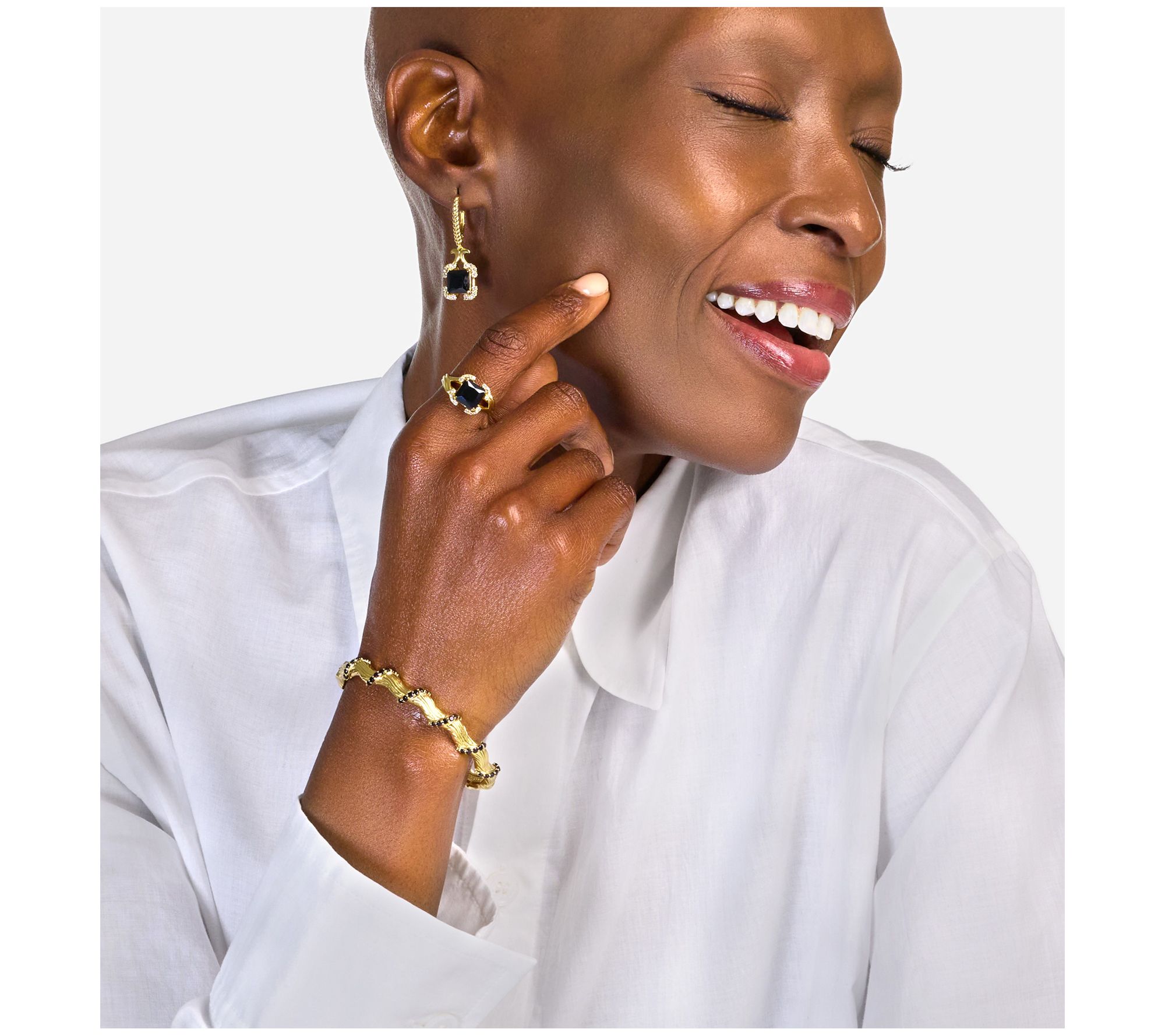 • Total gemstone weights are approximate: White Topaz 1.25 carats; Black Spinel 1.20 carats