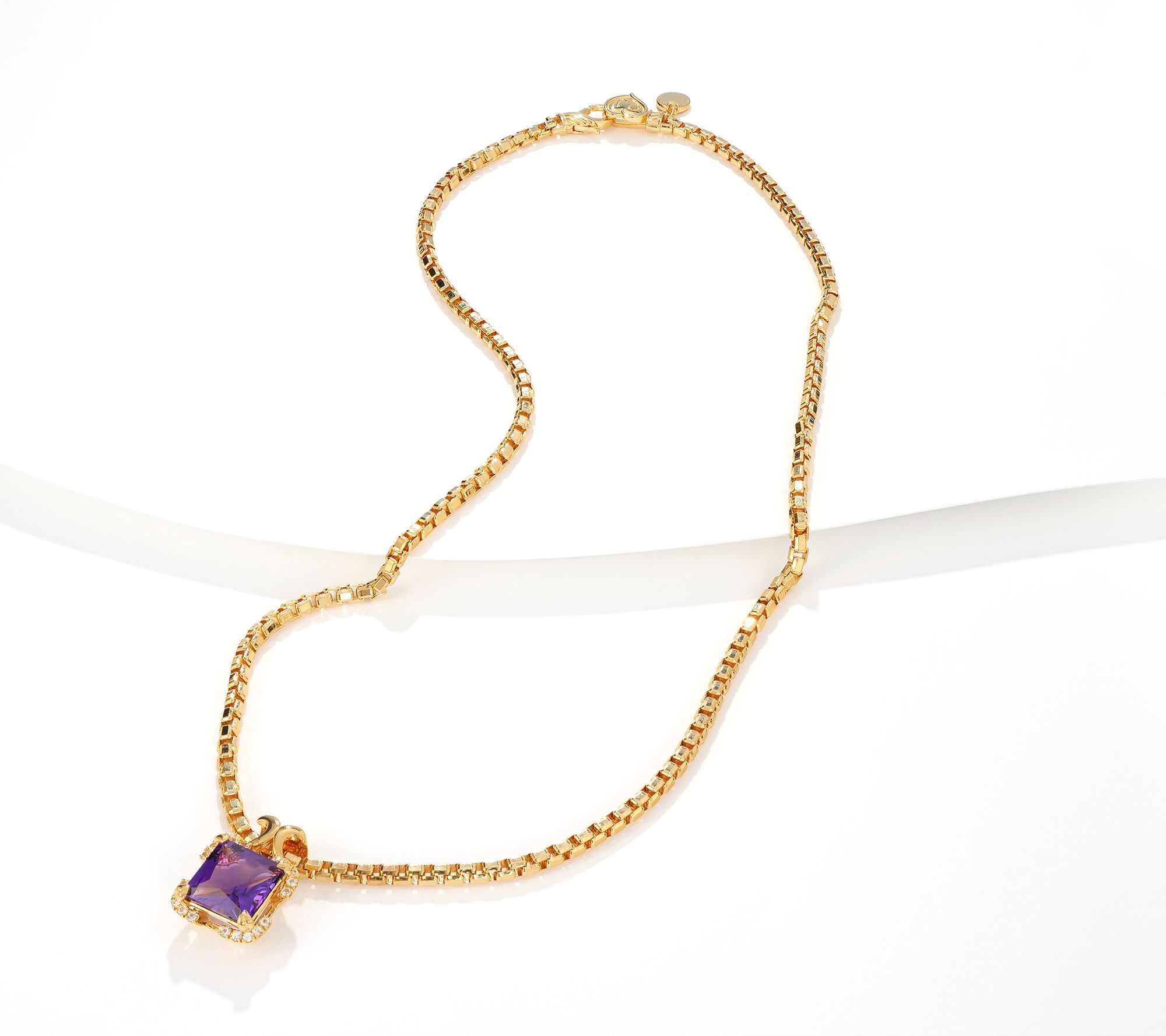 Mark a milestone, celebrate a new chapter, or reassert your personal style with this princess-cut gemstone pendant and box chain, a substantial pairing that instantly imparts sophistication to most any outfit. From Christian James by Scott Grimes.