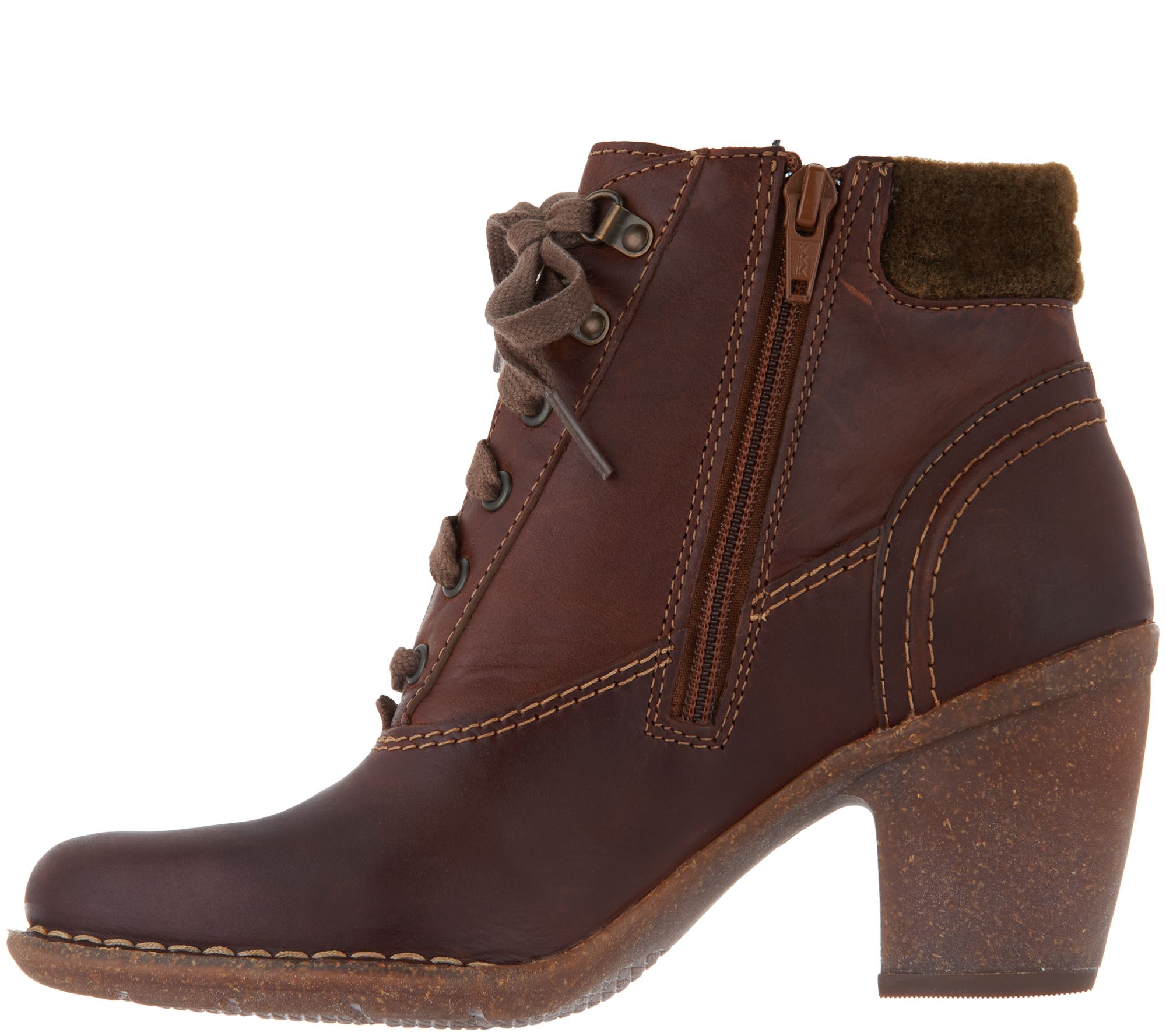• Lace-up design, side zipper, textile heel collar trim