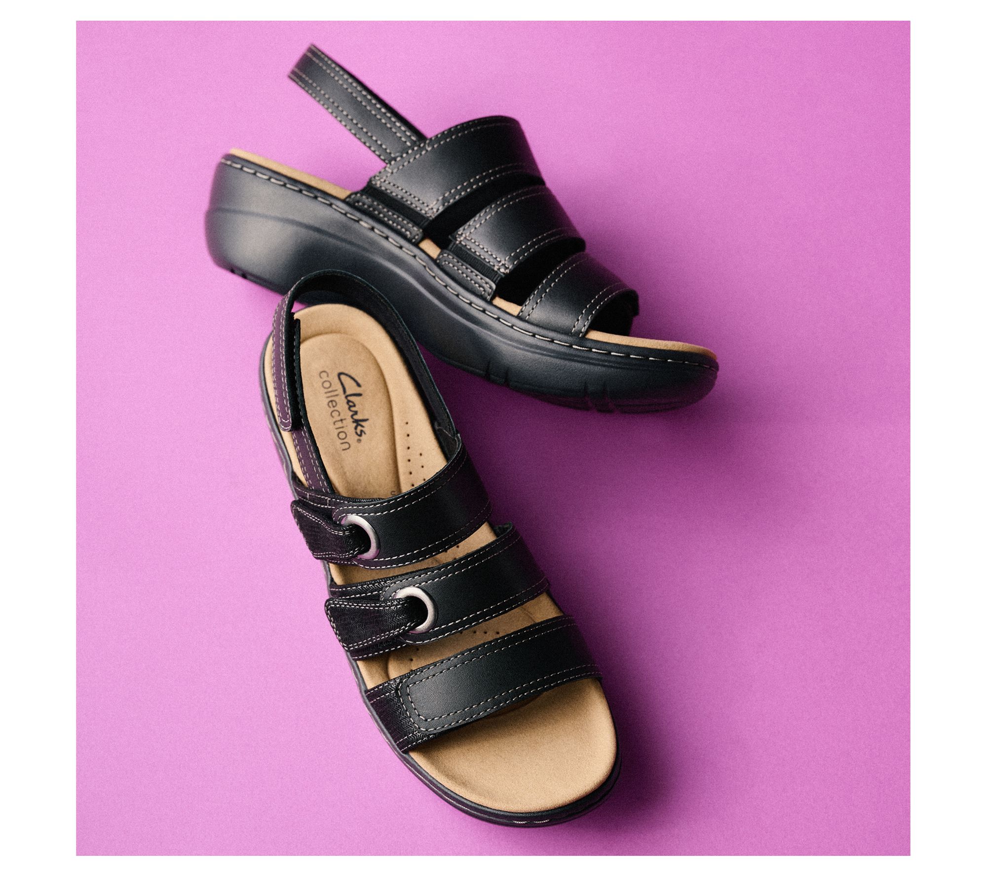 Searching for an open-air pair? Your shoe-shopping sesh stops right here with these breezy Clarks leather sandals. With ample exposure for enjoying the feel of sun-drenched days, adjustable straps for a customized fit throughout the day, and support technologies (like an Ultimate Comfort foam footbed) the brand is famous for, your summer just got soooo much better! From Clarks Footwear.