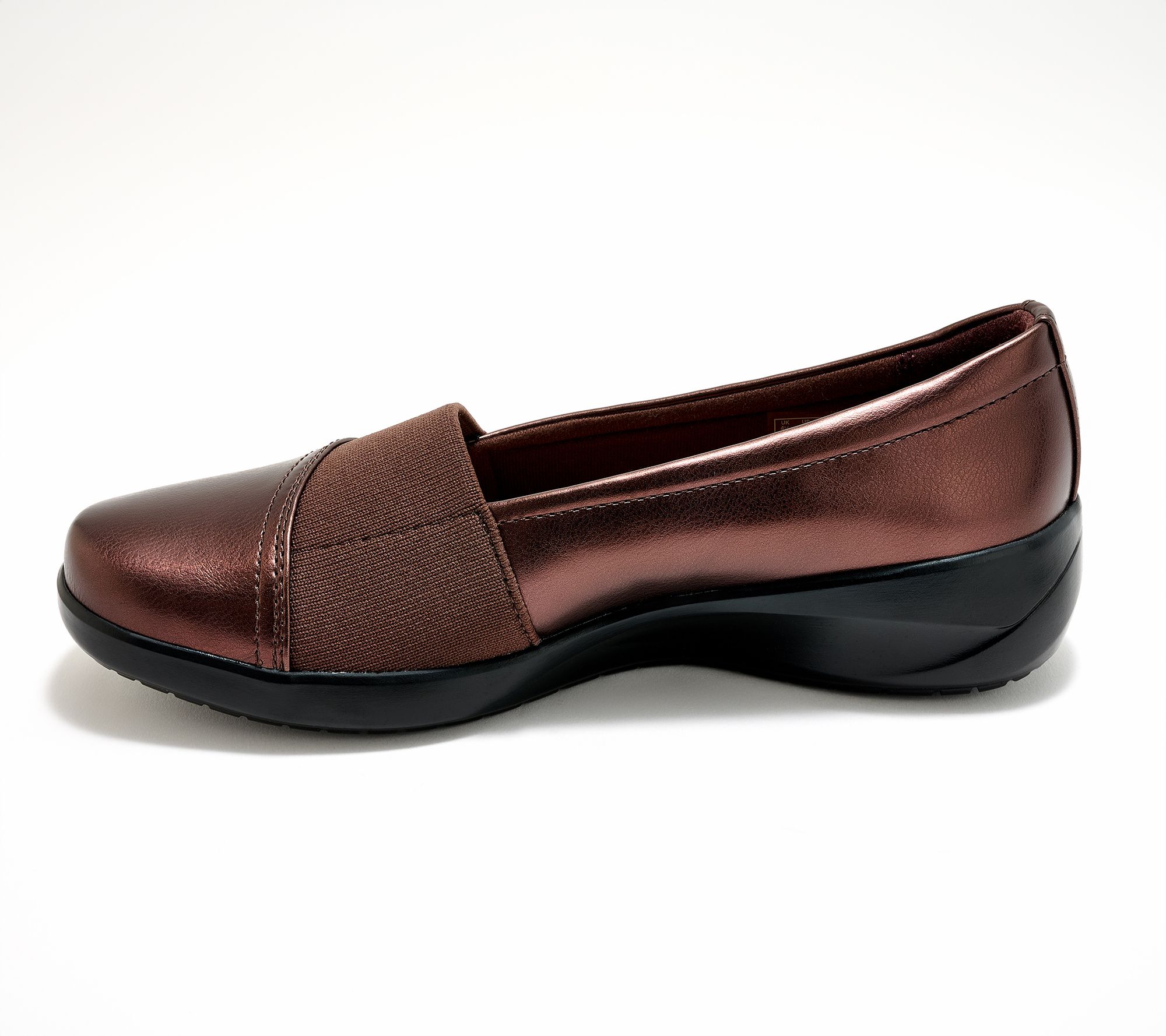 Your go-to shoe. When you need to switch from mellow mornings to on-the-go afternoons, these smart-looking leather slip-ons from Clarks can keep pace. Blending easy entry and all-day cushioning -- along with stretch panels for a flexible fit -- every step gets Ultimate Comfort support. (They make a great travel companion, too.) From Clarks Footwear.